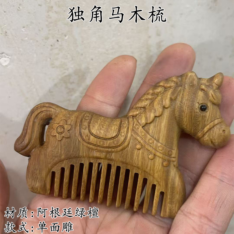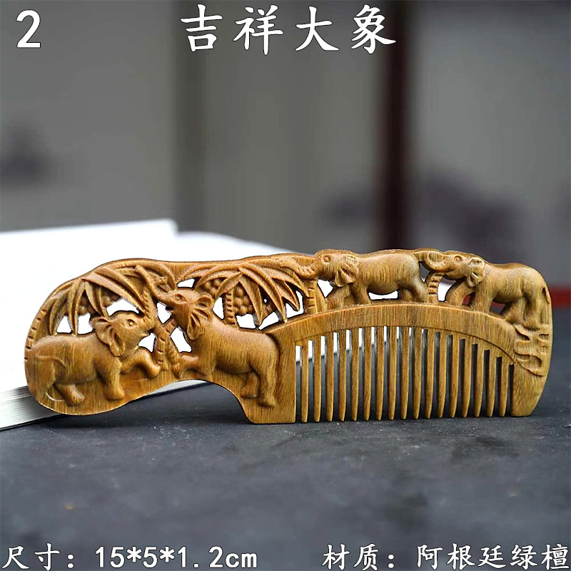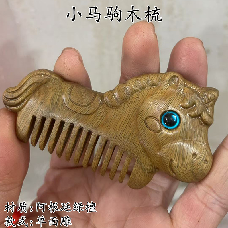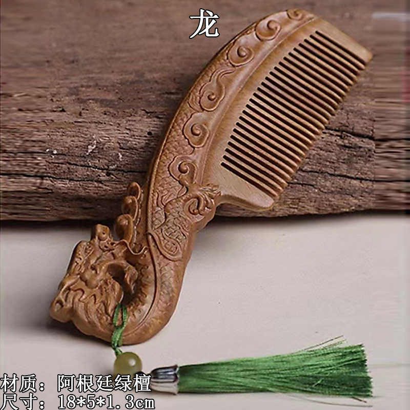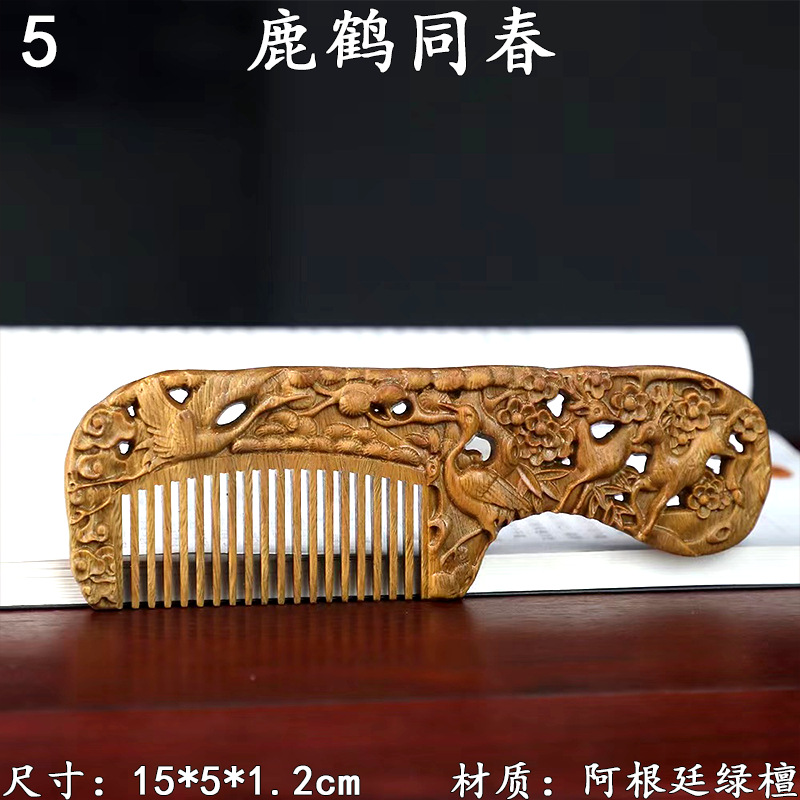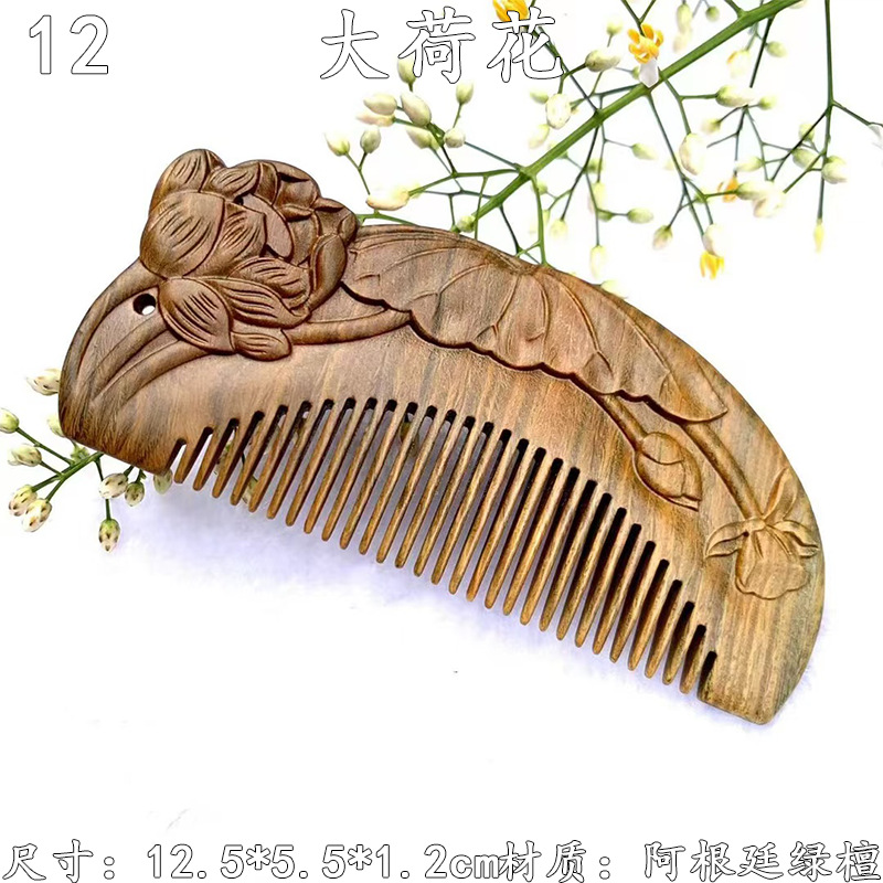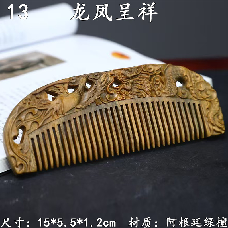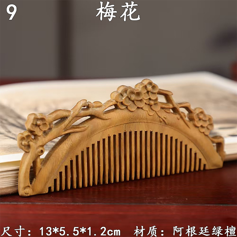 墨西哥绿檀雕刻木梳双面雕刻木质工艺品化妆梳子厂家定制¥18