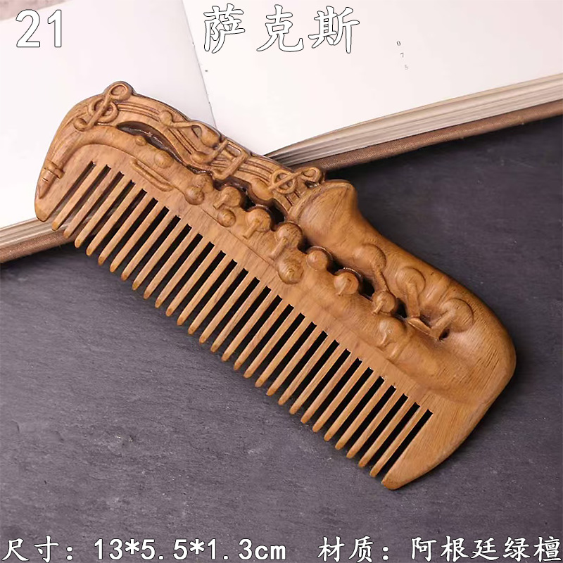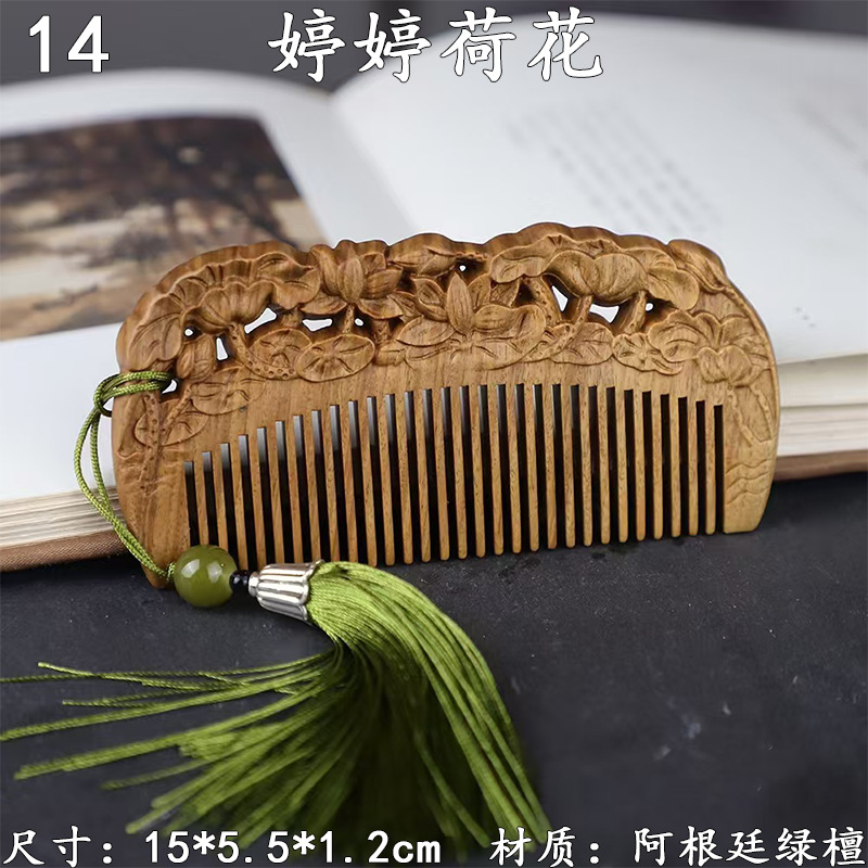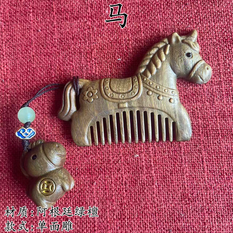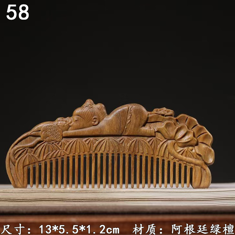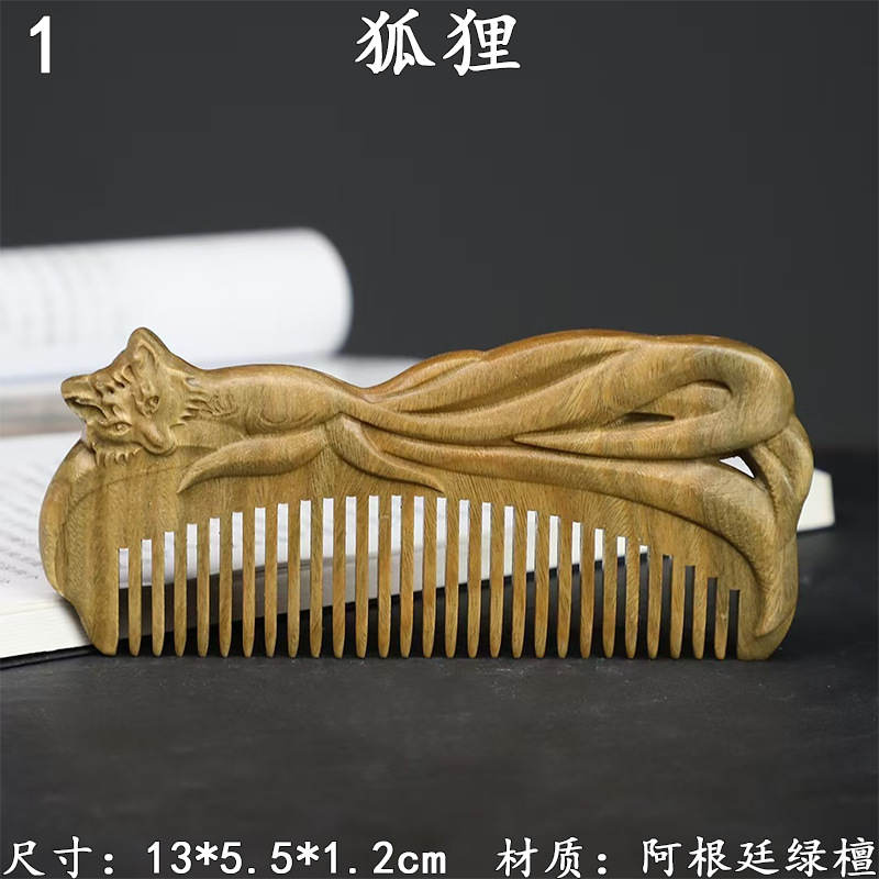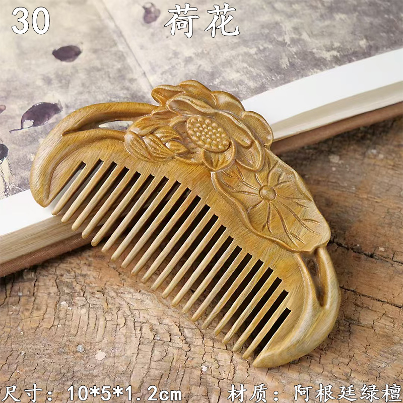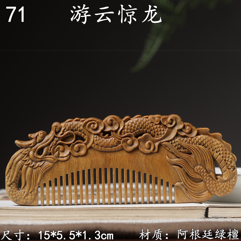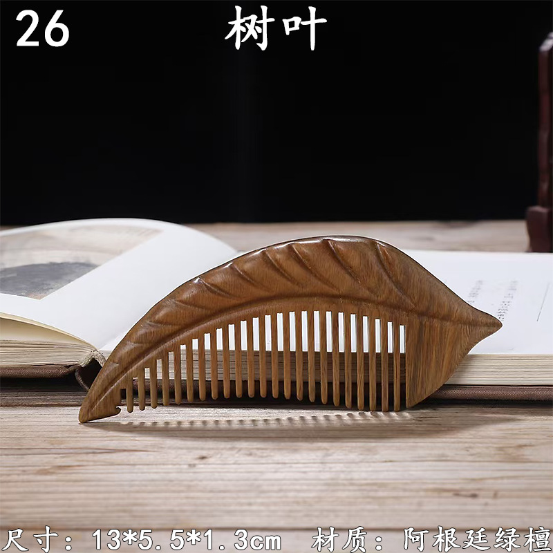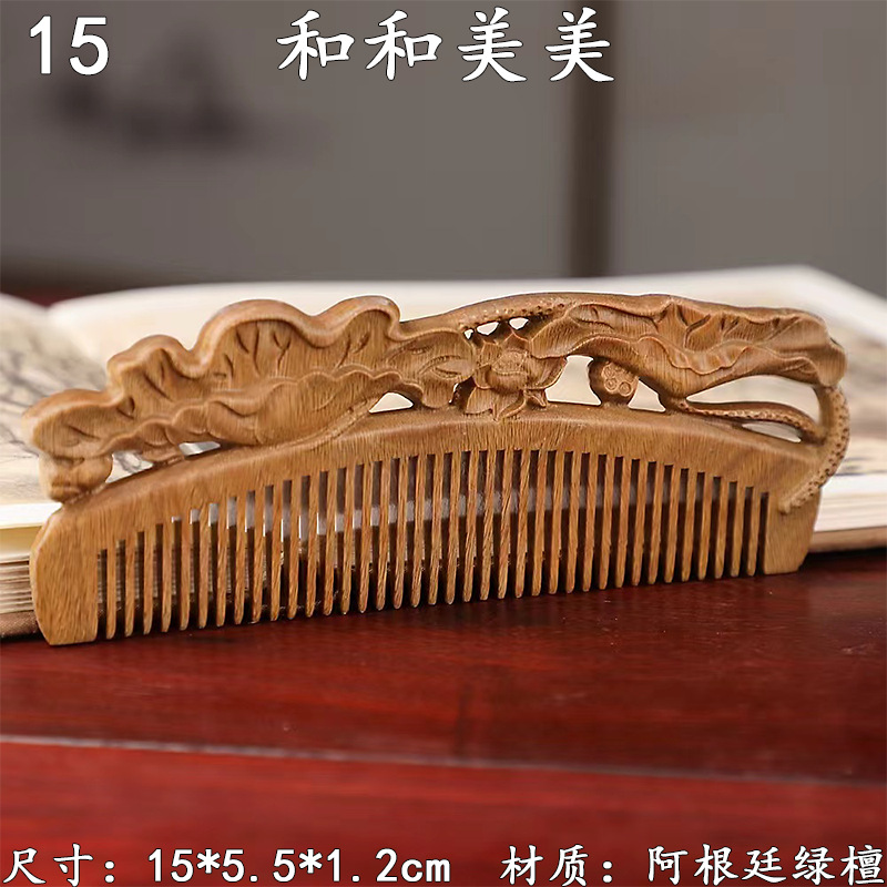 墨西哥绿檀雕刻木梳双面雕刻木质工艺品化妆梳子厂家定制¥18