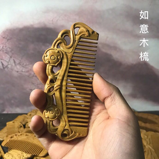 崖柏雕刻木梳定制logo厂家直销中式头梳礼品摆饰木质工艺品梳子¥3