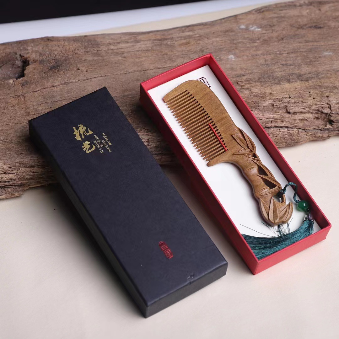 天然绿檀木梳子宽齿加厚木梳配盘玩布袋木质工艺礼品厂家直销定制¥2