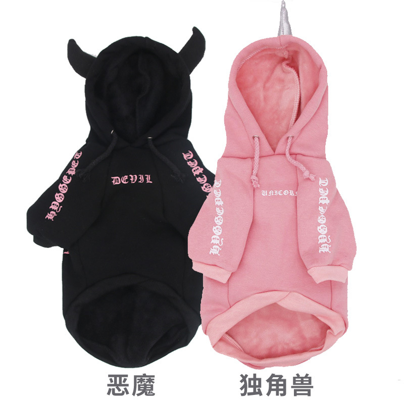 选用大厂面料,面料品质及颜色稳定,长期可供货!本款恶魔独角兽系列,是创始人原创设计,除了款式时尚,用的是全棉带氨纶面料,不掉色不起球,内里用的也是密度高不倒绒,手感超柔保暖,非常适合秋冬季节,因为狗狗猫咪天生爱动不喜受约束,所以面料的弹力很重要,弹力小穿着不舒服,弹力太大容易掉也容易坏,那我们这个面料的成分配比是正合适的。