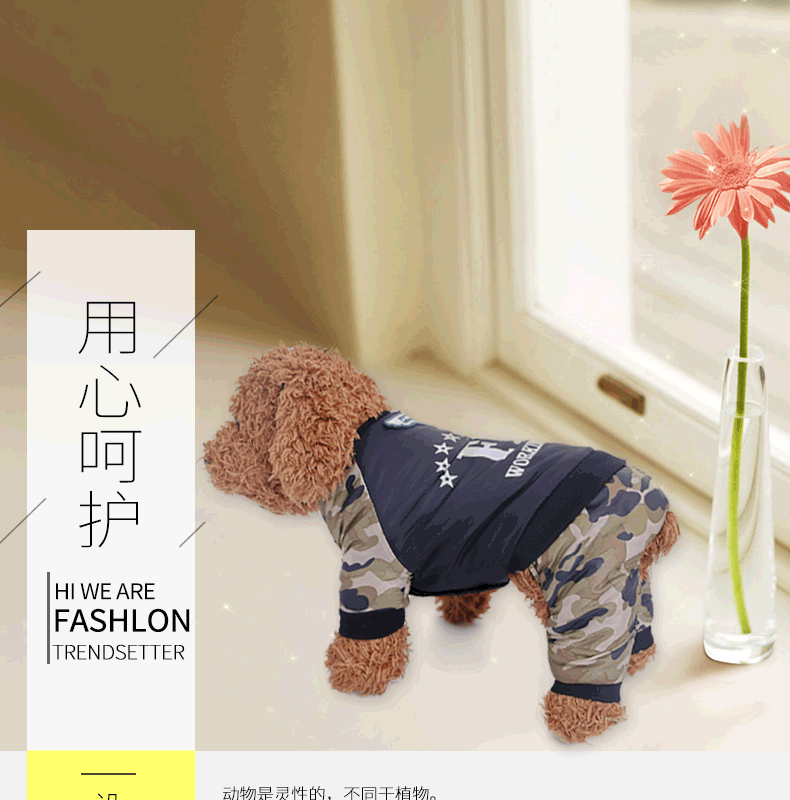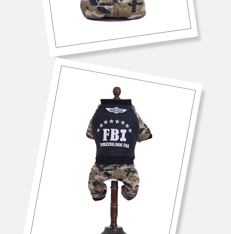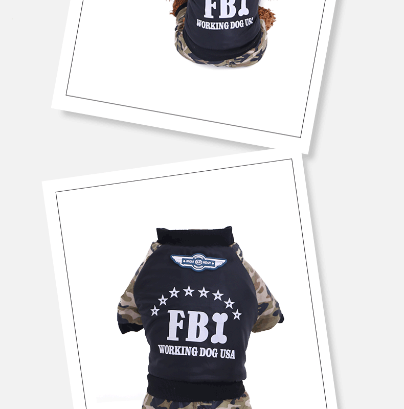 FBI 강아지 의류 가을 겨울 따뜻한 두꺼운 위장 무늬 면옷 소형견 테디 네발옷 애완동물 의류 도매