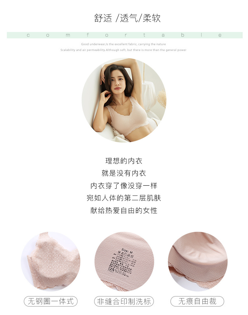 모인 노 스틸 링 스포츠 속옷 여성용 얇은 일체형 접착 이음매 없는 브라 학생 수면 브라 도매스토어 가기