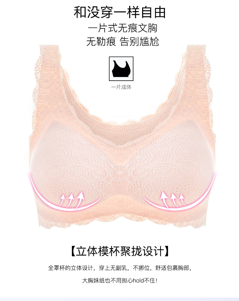 聚拢无钢圈运动内衣女士薄款一片式点胶无痕文胸学生睡眠胸罩批发