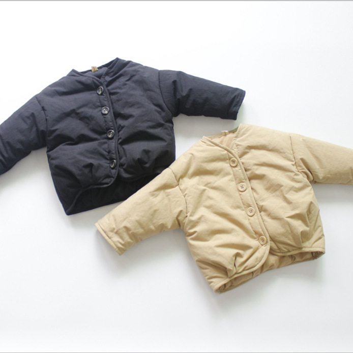 2025년 신상 가을 아동용 두꺼운 면옷 남아용 면코트 한국 스타일 루즈핏 단색 라운드넥 겨울 여아용 재킷스토어 가기