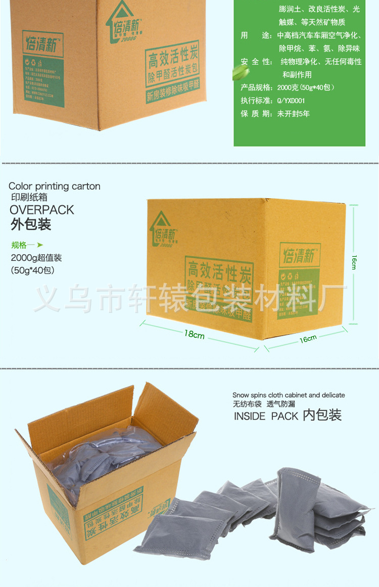 활성탄 패키지 50g100g500g 숯 새 집 장식 냄새 포름알데히드 탈취 내부 패키지 제조업체스토어 가기