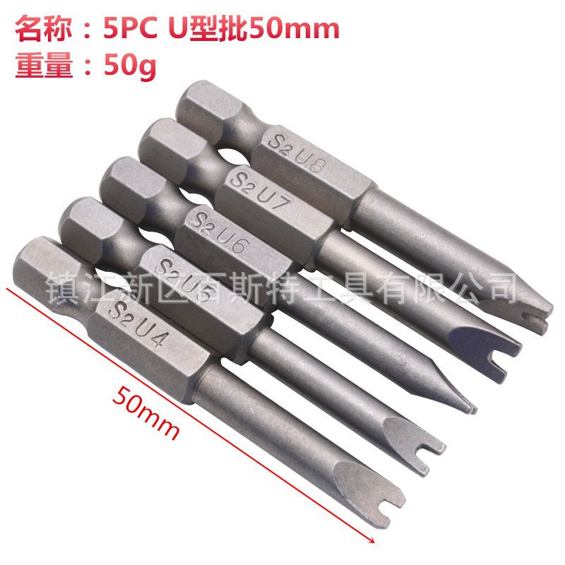 S2 합금 소재 U자형 배치 헤드 특수형 마그네틱 스크류 드라이버 헤드 5 종 세트 U자형 배치 헤드 50mm 드라이버