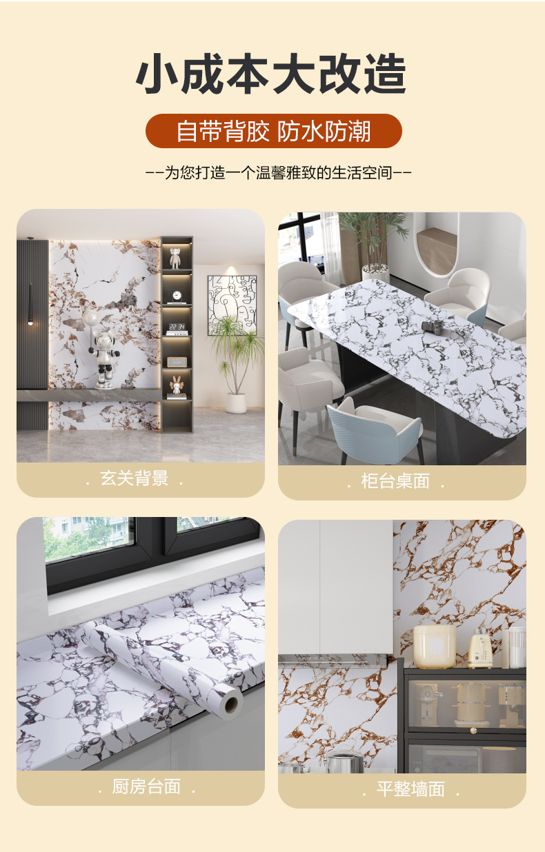 아마존 크로스 보더 두꺼운 매트 대리석 스티커 방수 내마모성 미끄럼 방지 조리대 욕실 주방 바닥 스티커스토어 가기