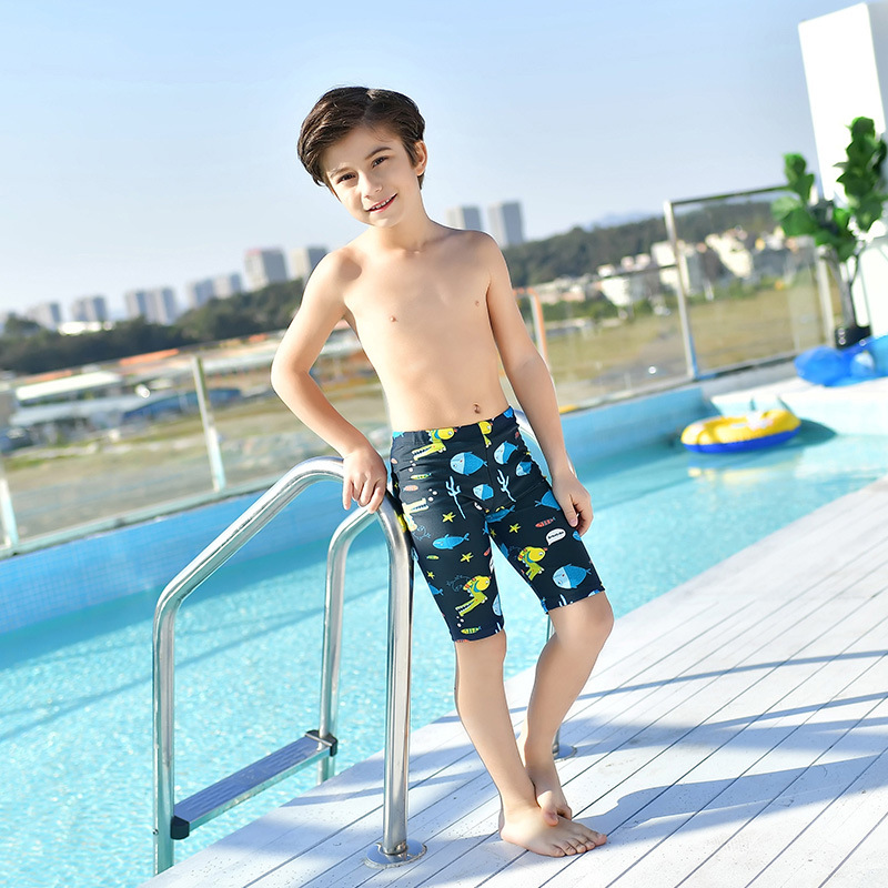 새로운 수영복 패션 귀여운 만화 소년 반 수영 트렁크 어린이 사각 속건 어린이 인쇄 수영 트렁크