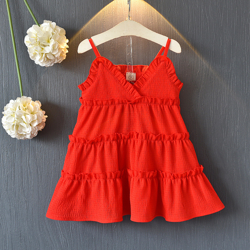여자 여름 새로운 한국어 스타일 쉬폰 레드 공주 드레스 아기 소녀 드레스 해변 휴가 어린이 드레스