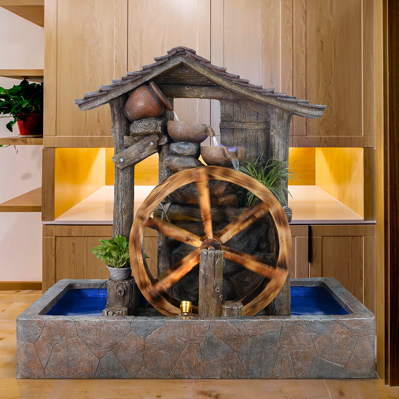 가습기 새로운 대형 풍수 바퀴 로비 안뜰 장식 공예 선물 물 트럭 분무 인테리어 장식