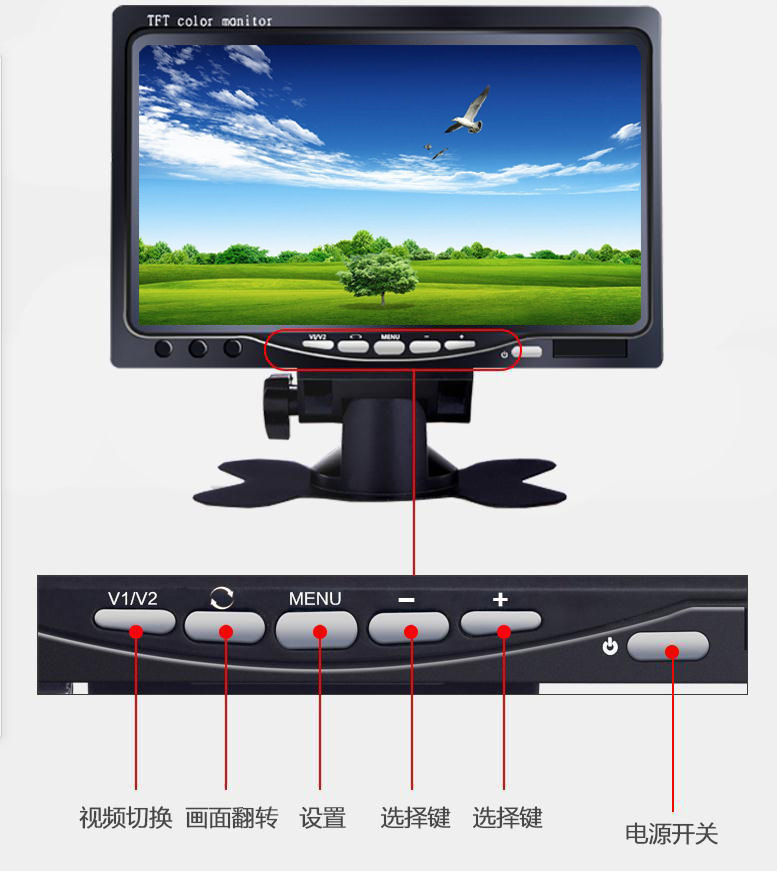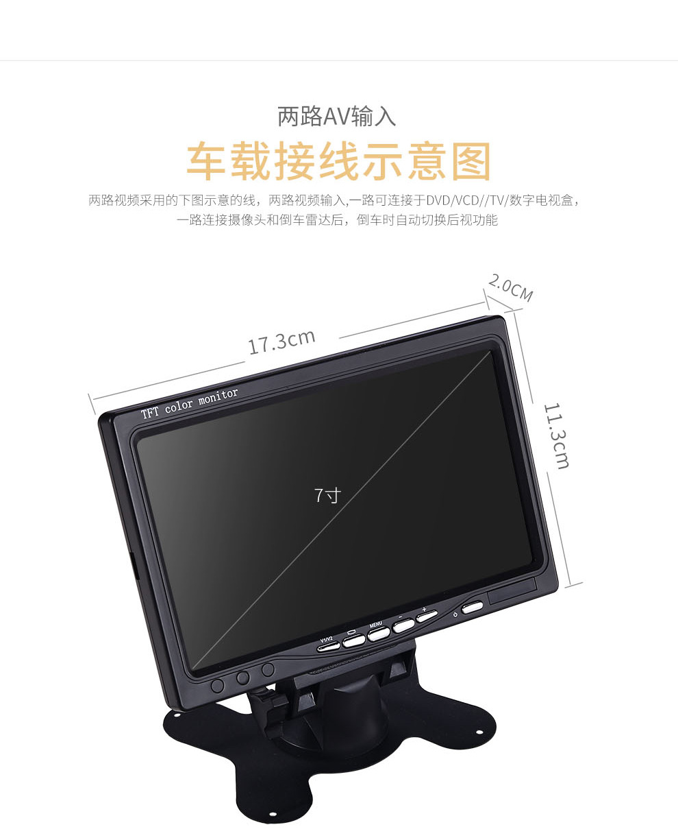 7inch 데스크탑 LCD 차량용 모니터 후진 영상 이중 입력 디지털 디스플레이 카플레이 휴대용 스크린