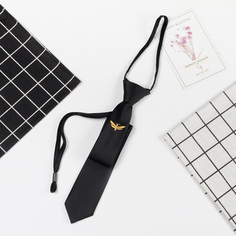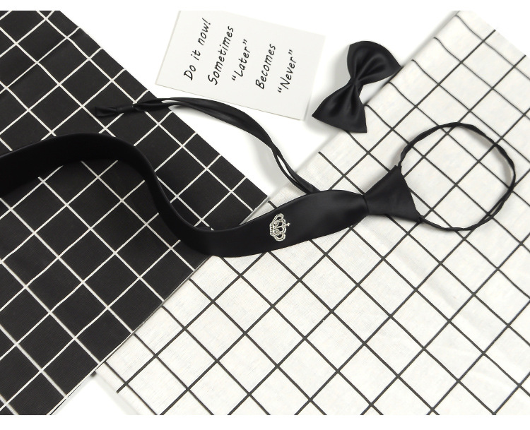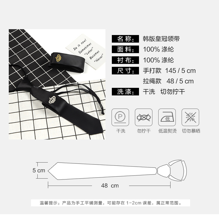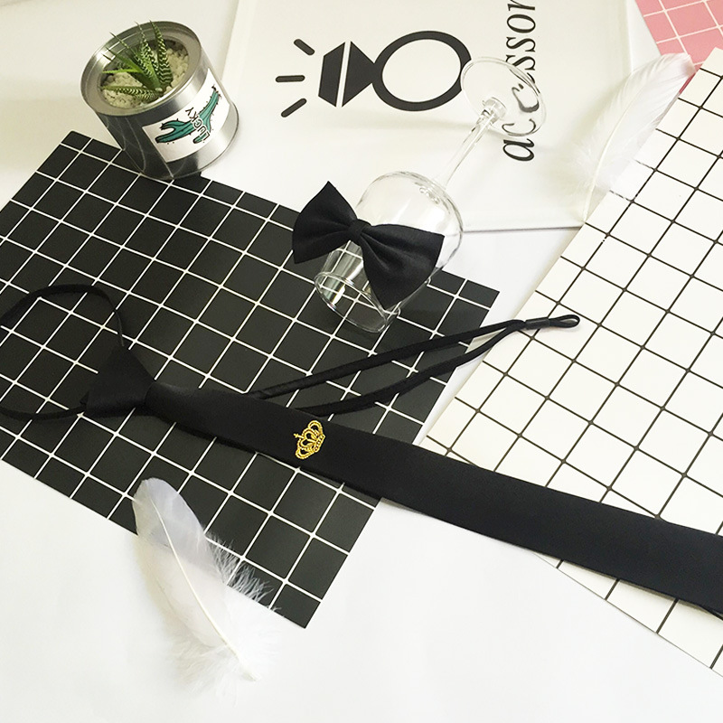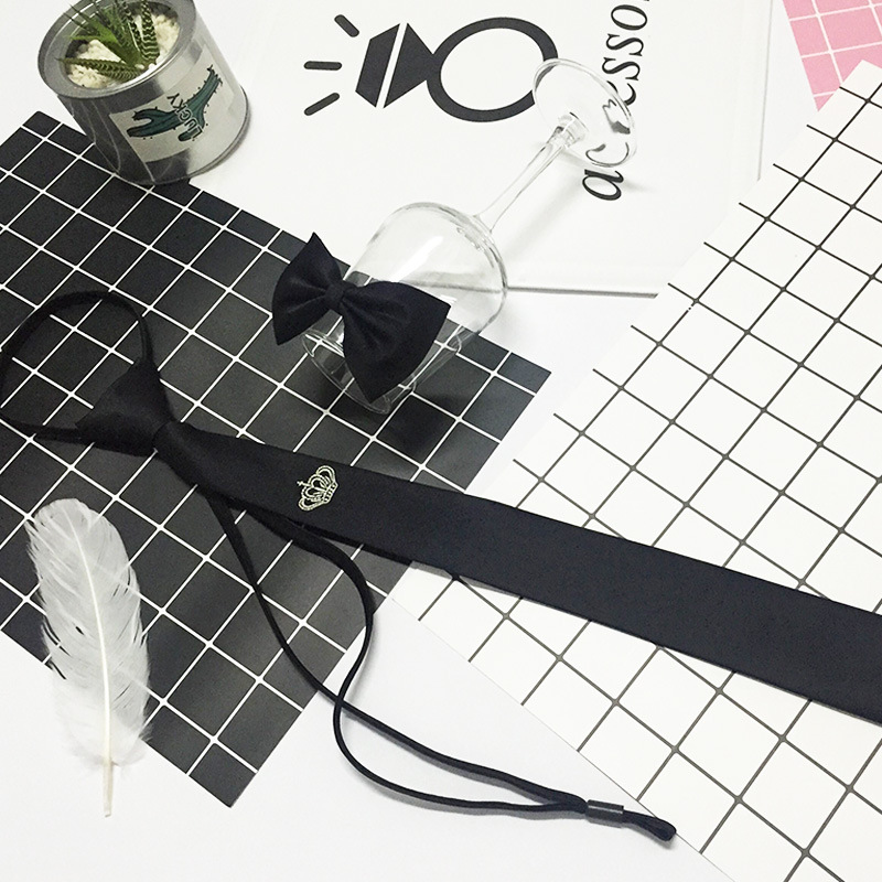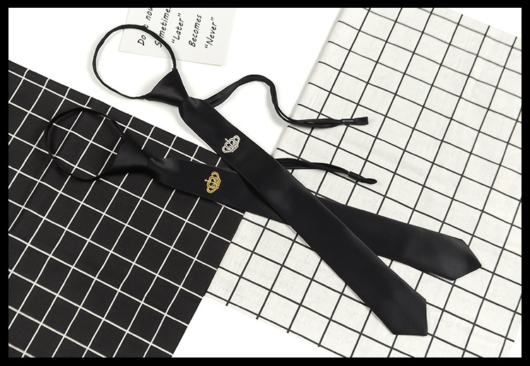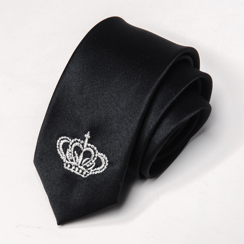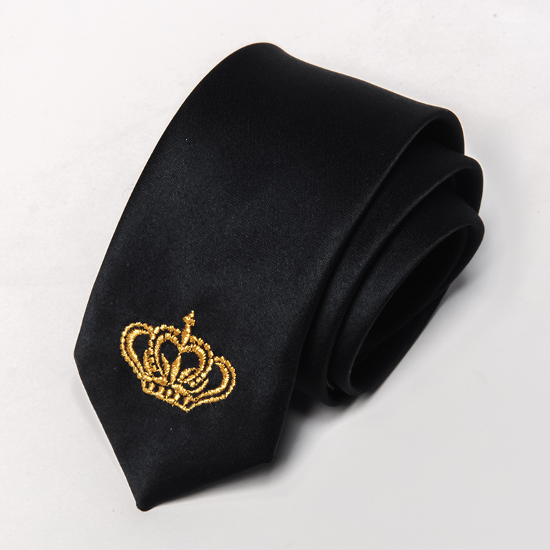 패션 새로운 남자의 작은 넥타이 크라운 자수 헤어 스타일리스트 좁은 검정 5cm 게으른 지퍼 액세서리