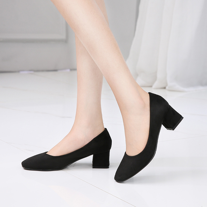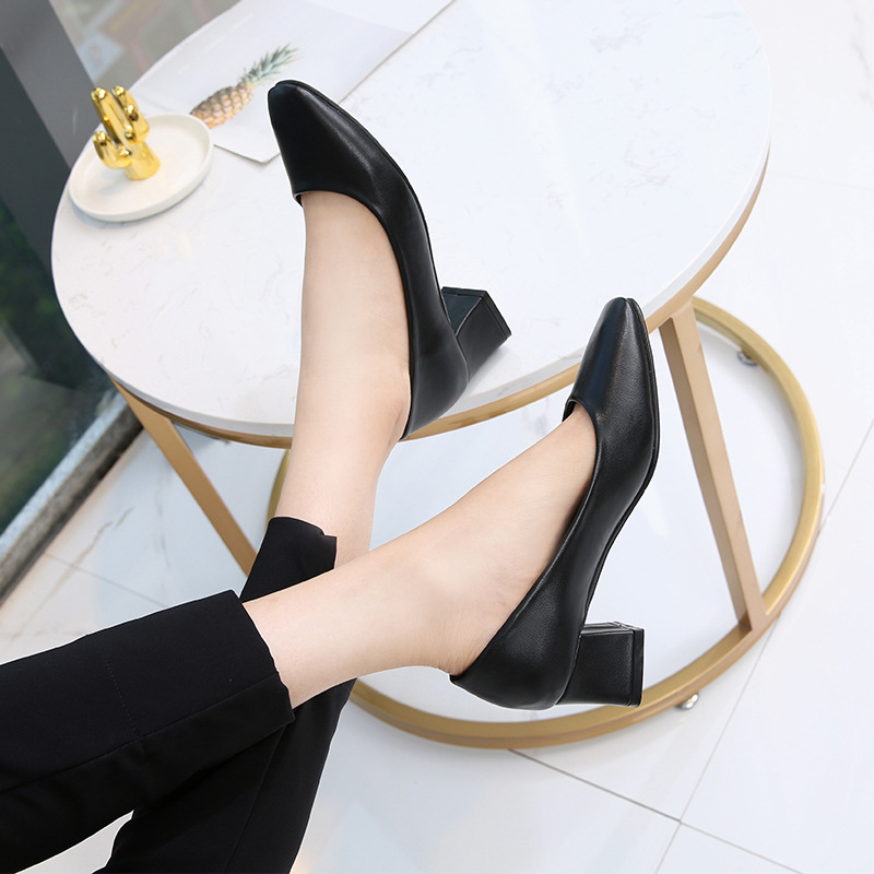 공장 다이렉트 블랙 작업 신발 부드러운 가죽 두꺼운 굽 얕은 입 스튜어디스 신발 정장 호텔 신발 작업 신발 머리카락 세대스토어 가기