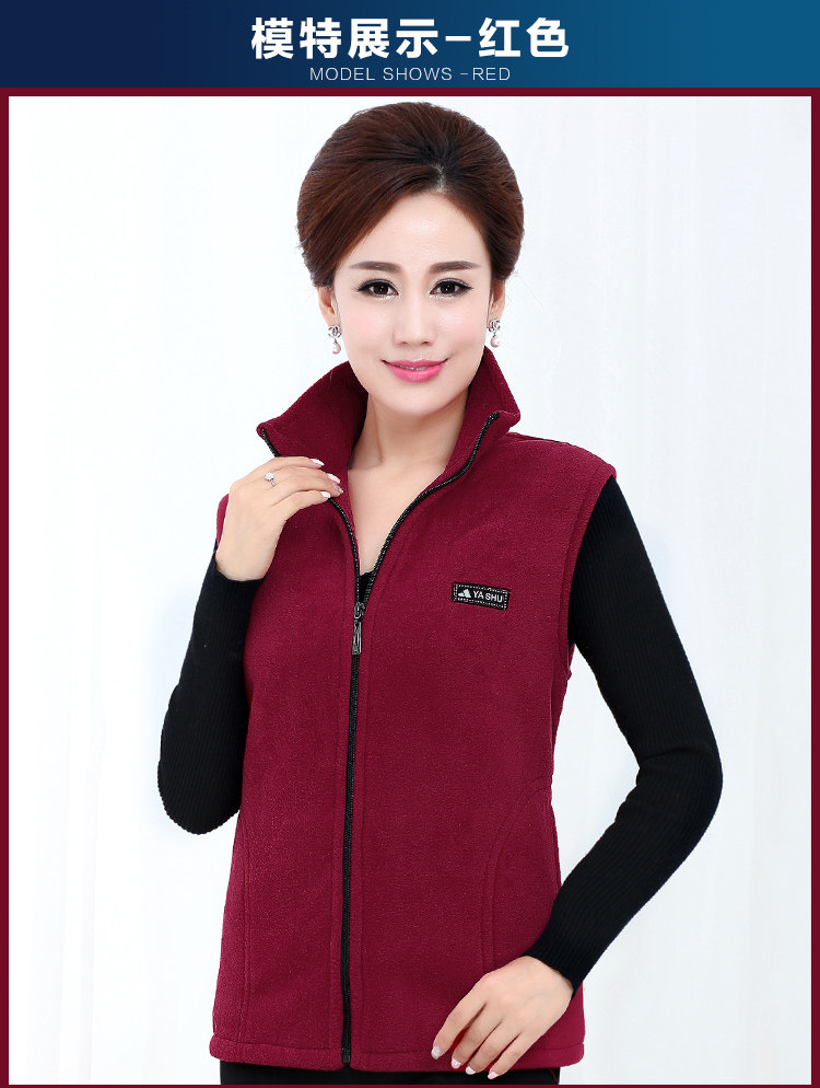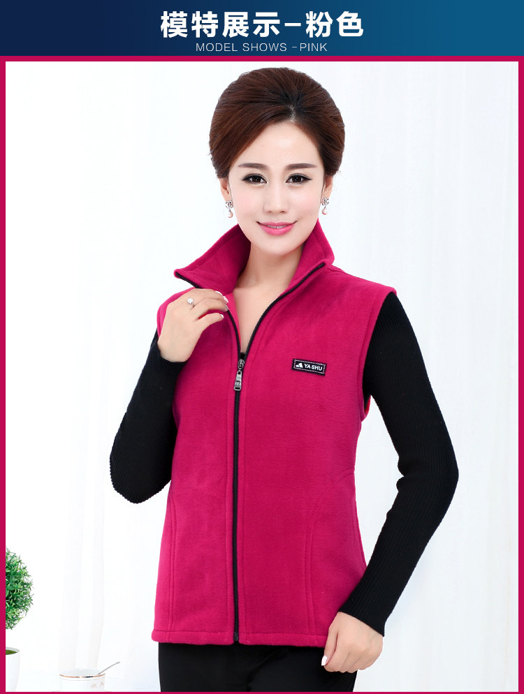 중노년 여성용 대형 플리스 조끼 신상 봄 가을 플리스 조끼 여성용 보온 조끼