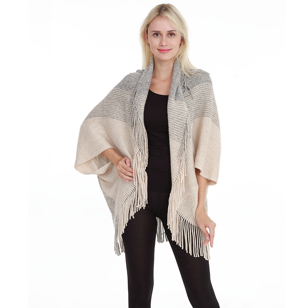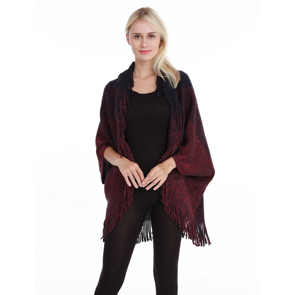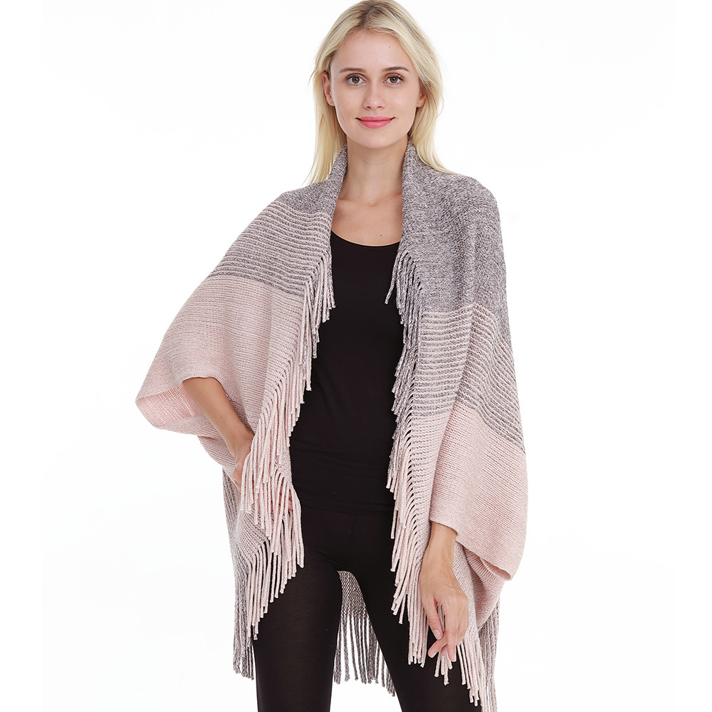 봄과 가을 아마존 폭발 가디건 유럽과 미국 대비 컬러 스티치 숄 술 케이프 가디건 플러스 사이즈 느슨한 니트 스웨터