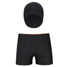 新款游泳裤 男士平角 温泉沙滩大码鲨鱼皮成人泳裤带泳帽套装