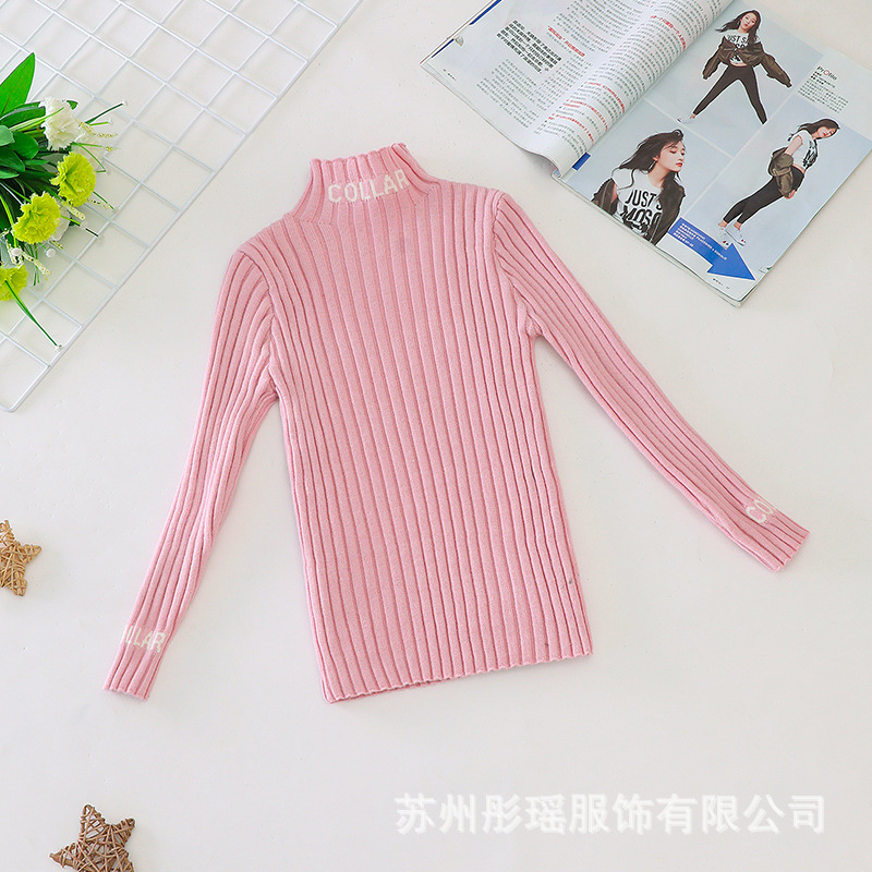 여아용 터틀넥 스웨터, 중대형 아동용 2025 봄 가을 신작 아동복 단색 외국 스타일 한국식 아동용 니트 바닥 셔츠스토어 가기
