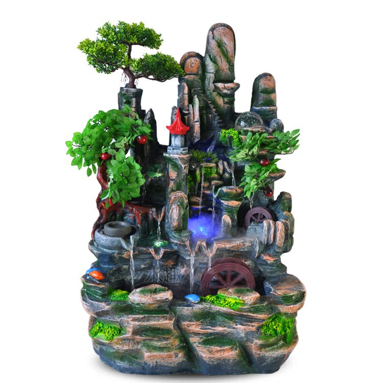 실내 바위 흐르는 물 녹색 인공 나무 흐르는 물 장식품 모조 돌 큰 물고기 탱크 분수 선물
