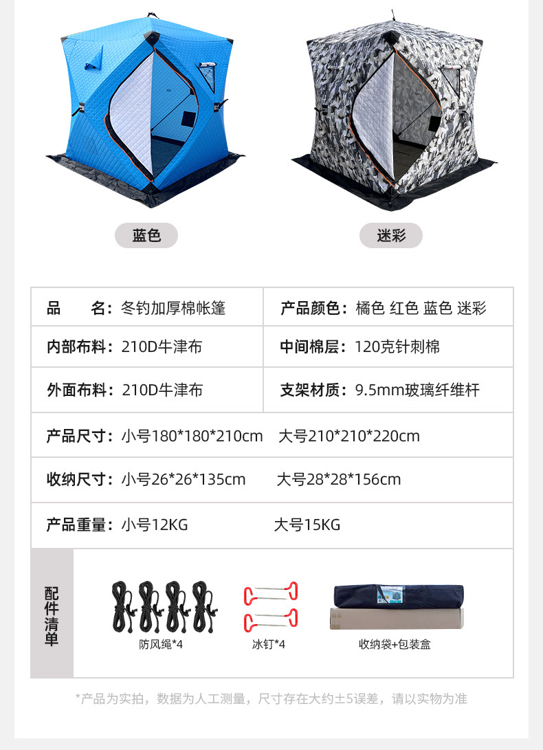 야외 겨울 낚시 텐트, 면 소재로 보온 및 두꺼워진 방한 기능, 다인용 눈낚시 하우스, 휴대가 간편한 사우나 겨울 낚시 텐트