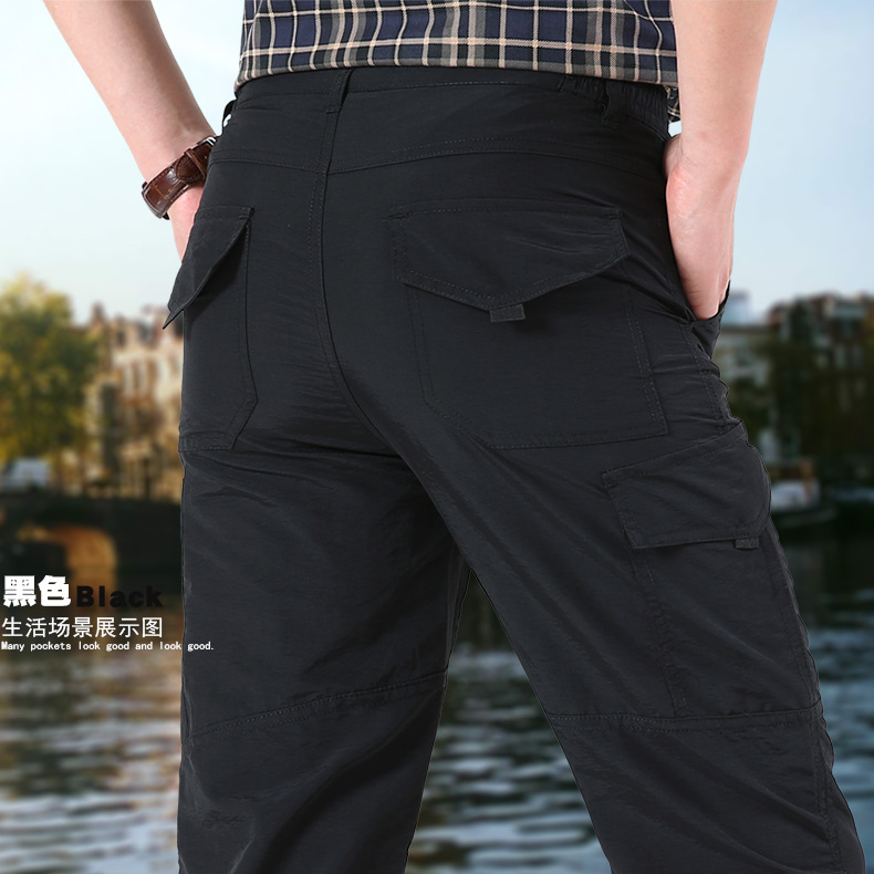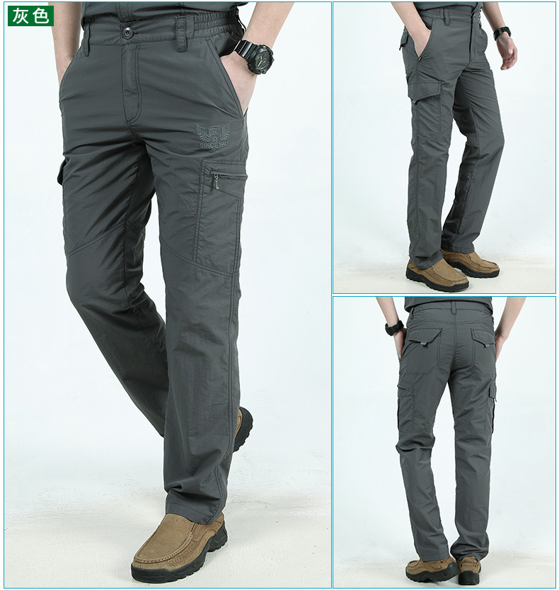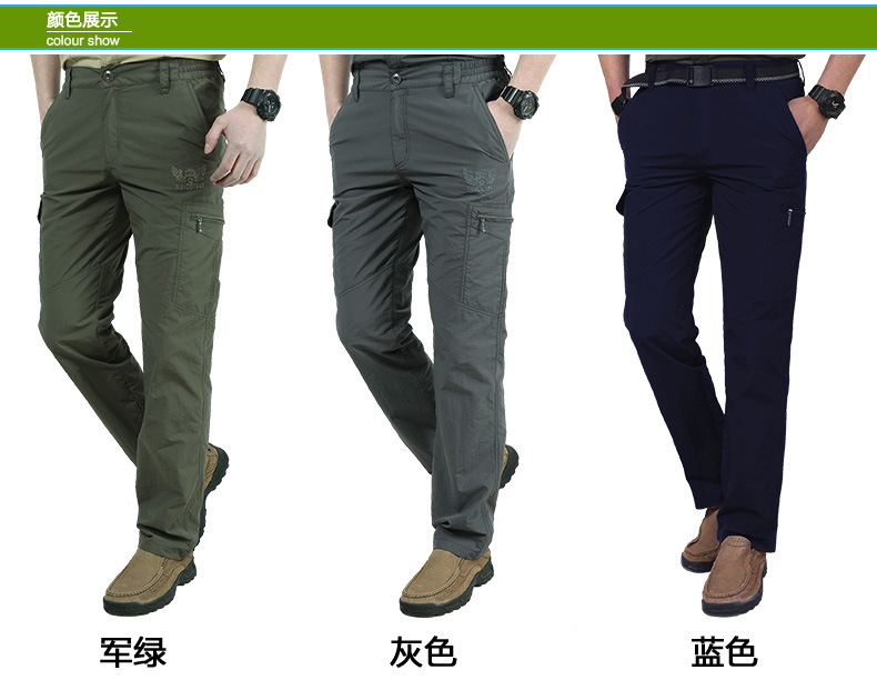 봄과 가을 야외 등산 바지 속건 바지 남성용 중간 두께 방수 방풍 멀티 포켓 충전 캐주얼 롱 팬츠 S105