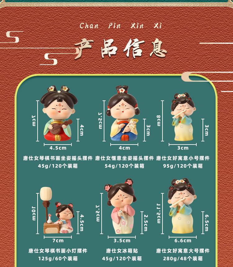 | 【产品名称】 | D1213-1-7唐仕女琴棋书画摇头摆件 |