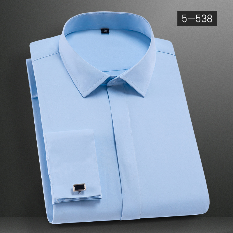 法式袖扣衬衫男长袖纯色暗门襟寸衫青年男装休闲男式衬衣修身