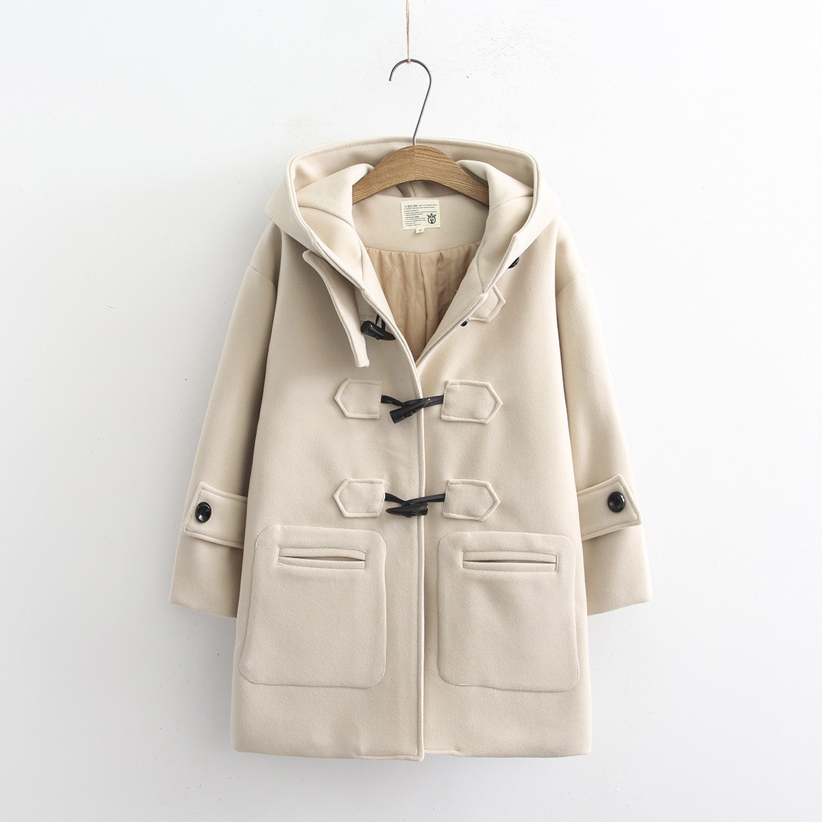 코너 버튼 모직 코트 여성 가을과 겨울 중간 길이 모직 코트 후드 학생 리틀 코트 S14281스토어 가기
