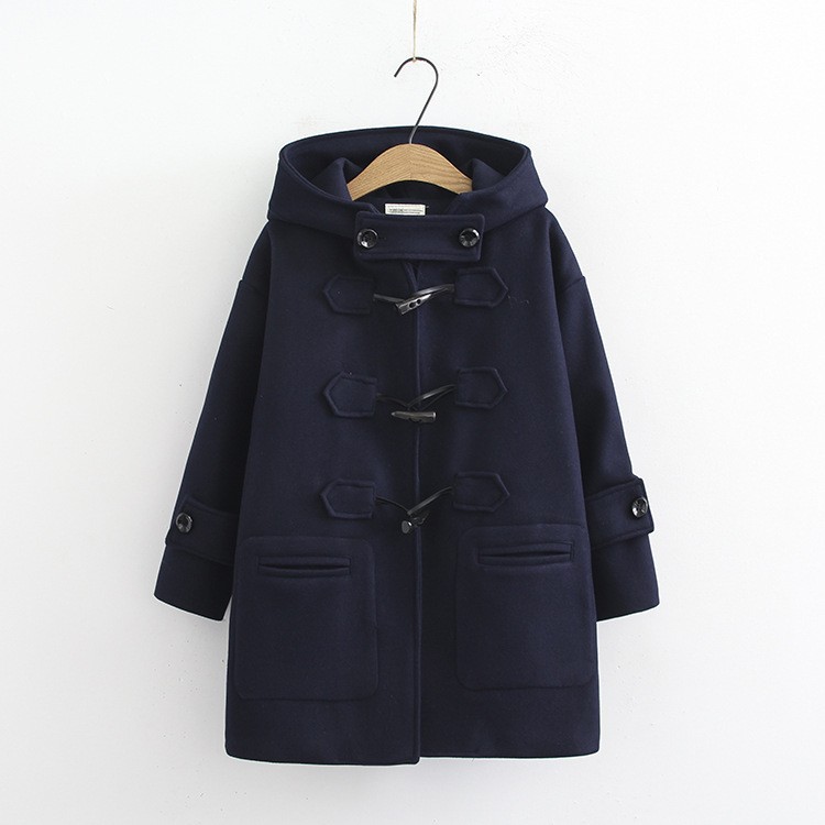 코너 버튼 모직 코트 여성 가을과 겨울 중간 길이 모직 코트 후드 학생 리틀 코트 S14281