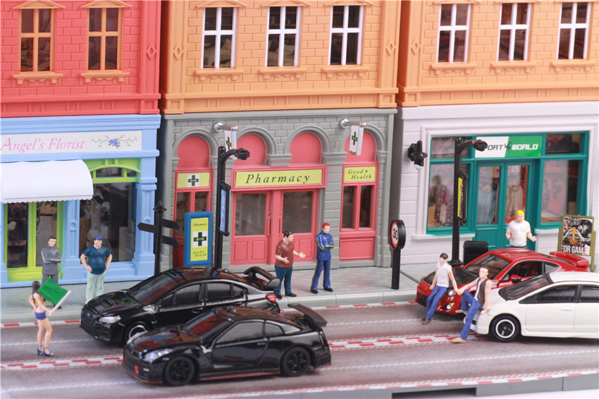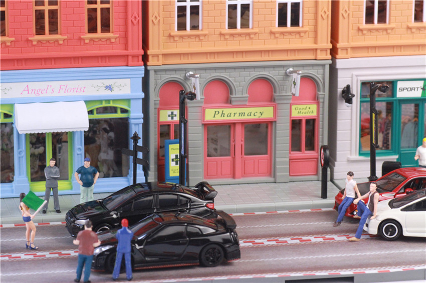 RM 1: 64 인형 거리 그림 세트 거리 깃발 경주 미니어처 풍경 장면에 적합스토어 가기