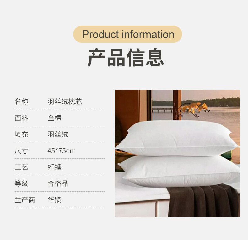 후아주 순면 안티 페더 천 깃털 벨벳 베개 호텔 베개 코어 호텔 린넨 침구 베개 도매스토어 가기