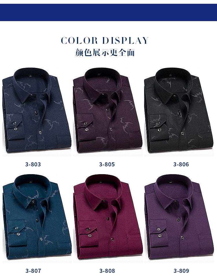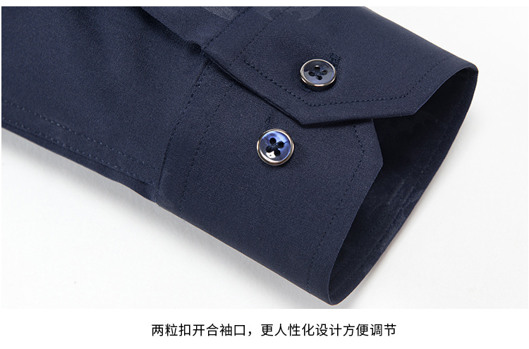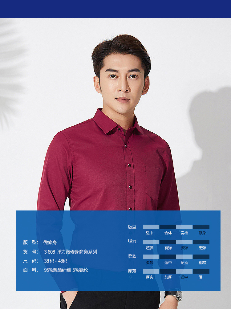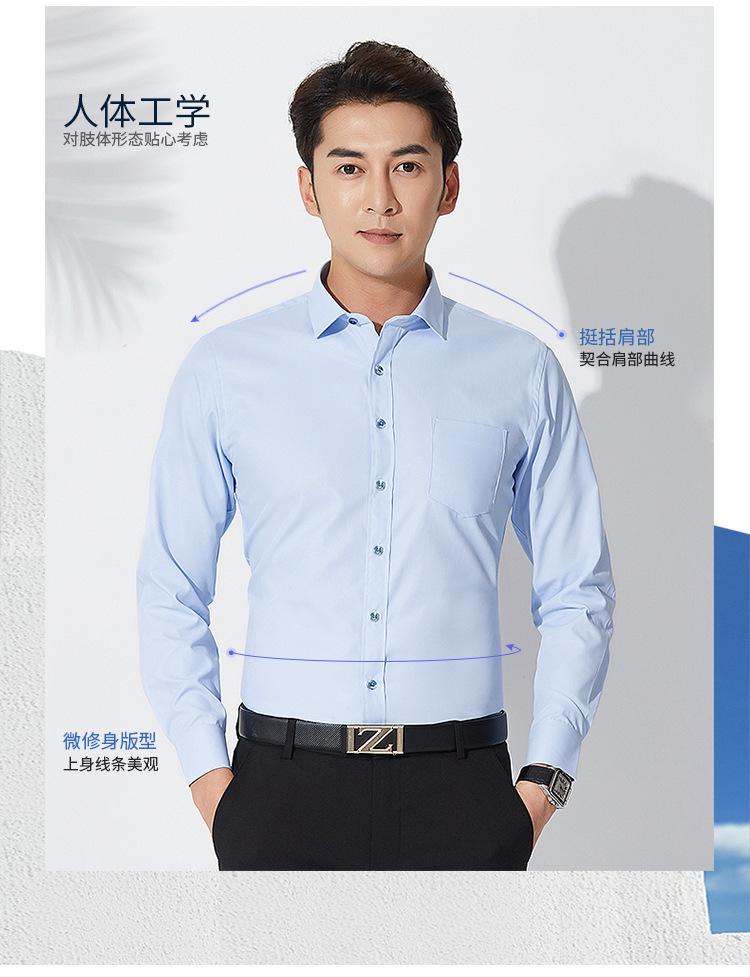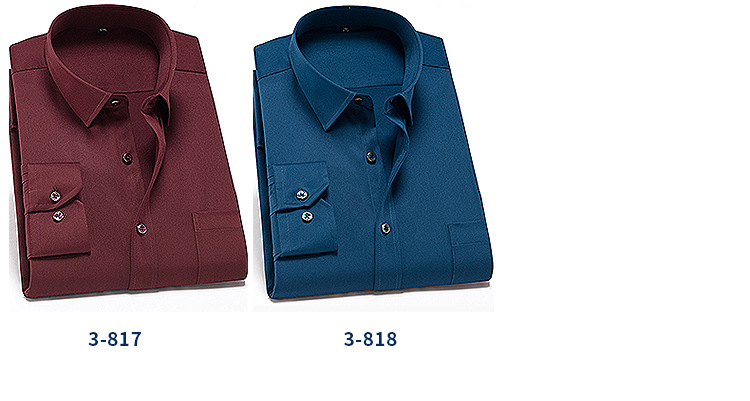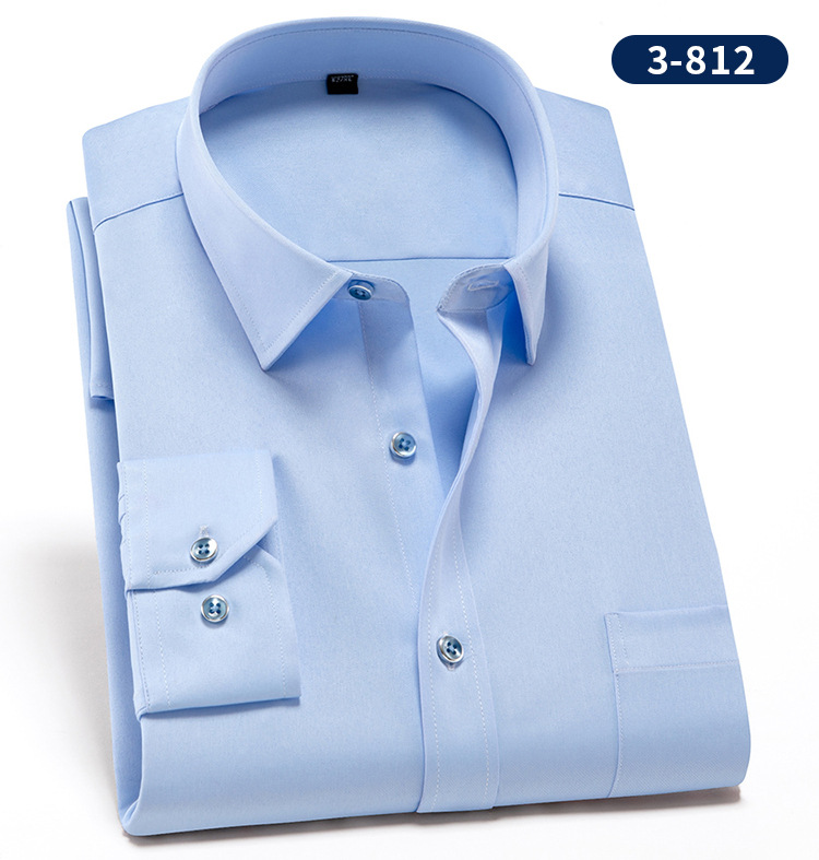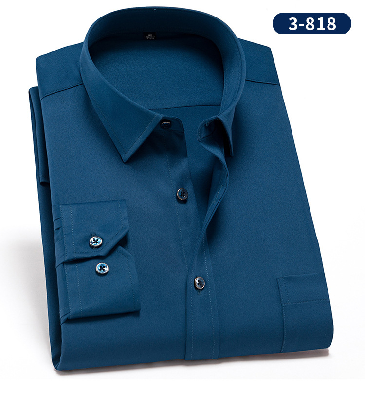• 3-812 블루 솔리드 컬러 스트레치 긴 소매 셔츠 남성
