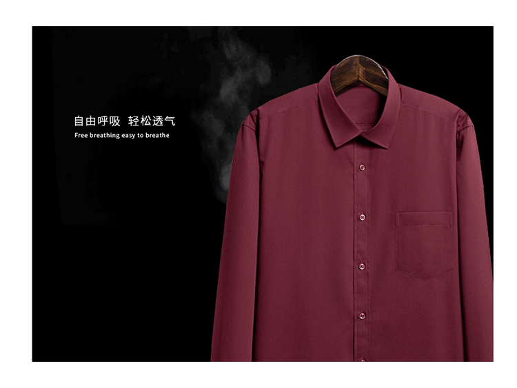 • 3-818 다크 그린 단색 스트레치 긴 소매 셔츠 남성