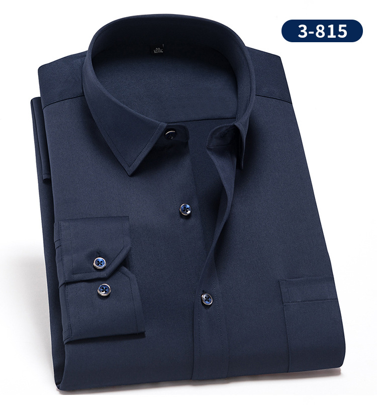 • 3-815 네이비 단색 스트레치 긴 소매 셔츠 남성
