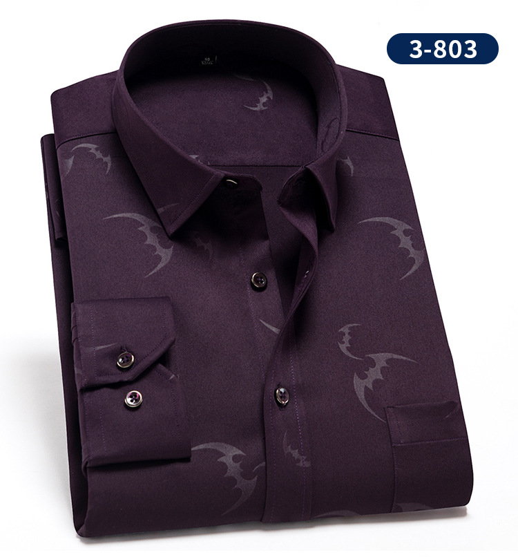 • 남성용 3-809 보라색 단색 스트레치 긴 소매 셔츠