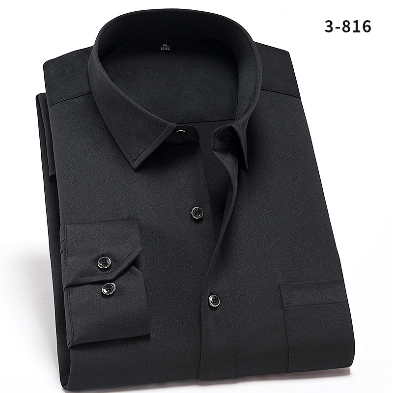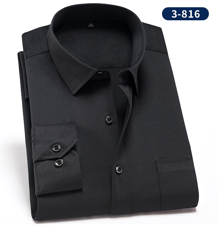 • 3-816 블랙 솔리드 컬러 스트레치 긴 소매 셔츠 남성