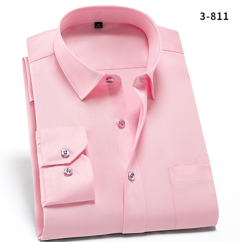 • 이 색상은 매진 된 반면 주식은 3-811 핑크 단색 스트레치 긴 소매 셔츠 남성