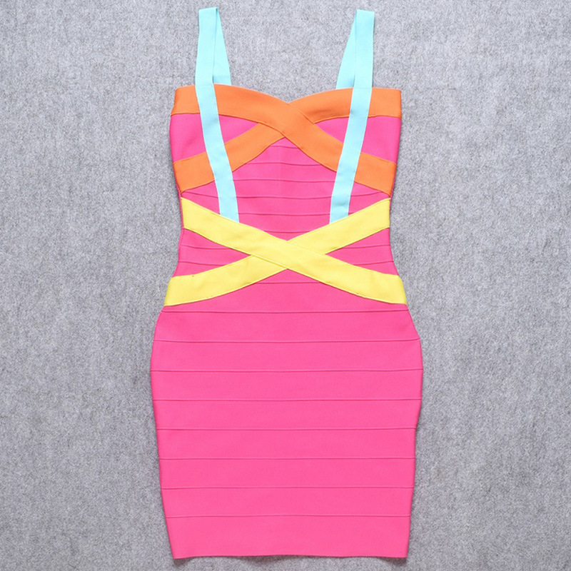 클래식 붕대 드레스, 멜빵 스타일, 섹시한 여성복, 유럽 및 미국 나이트클럽 스타일, 탄력 있는 멀티 컬러 힙허깅 스커트, 공장 직판, 해외 배송