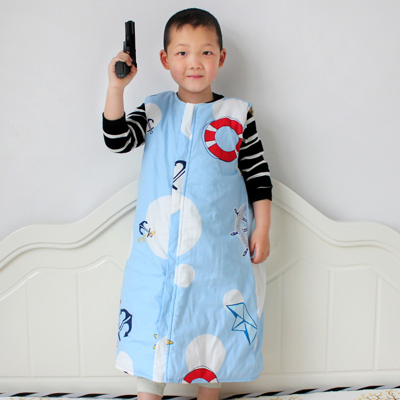 CUHK 아기 학생을 위한 어린이 발 노출 면 조끼 스타일 순면 침낭 봄, 여름, 가을, 겨울 민소매 배 보호 이불