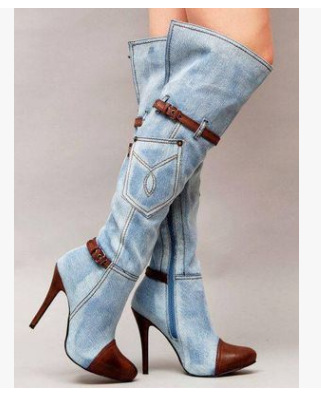 2018 새로운 카우보이 부츠 하이힐 패션 벨트 버클 무릎 위 부츠 JGB2018N0010018스토어 가기