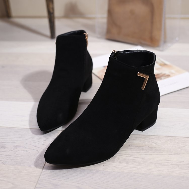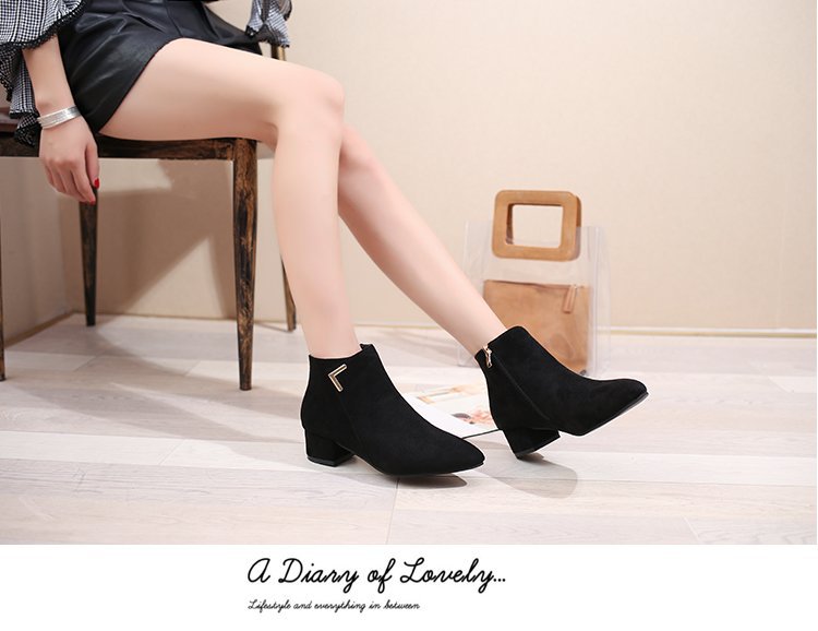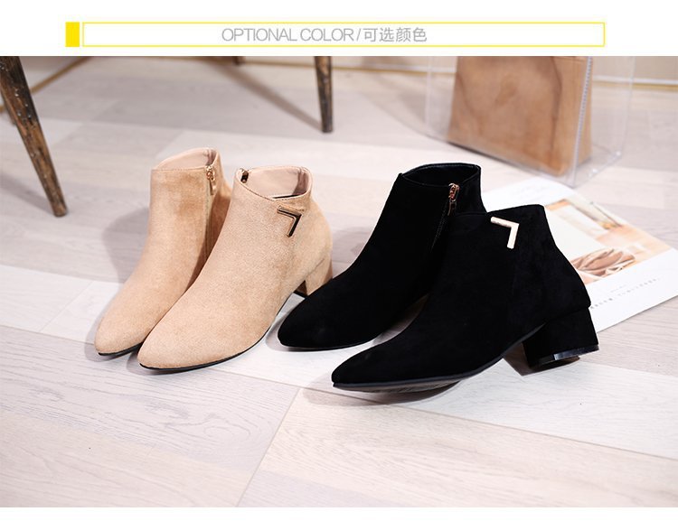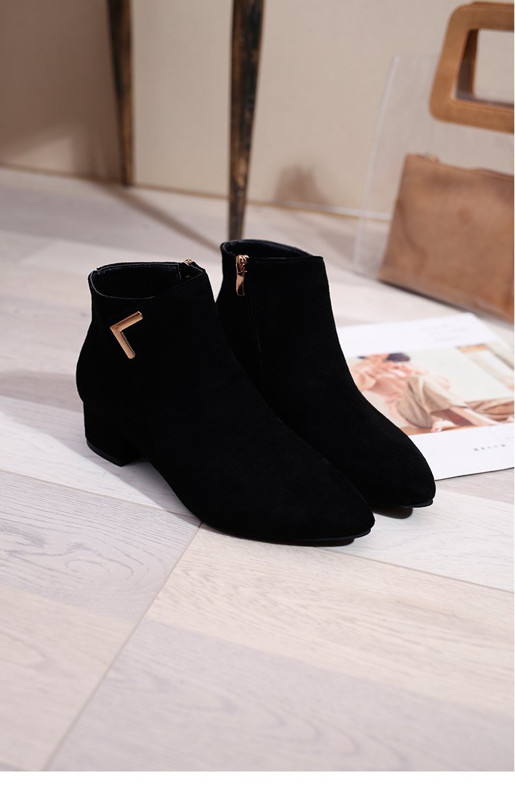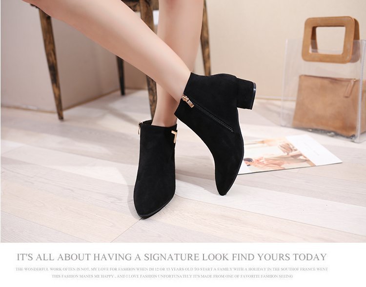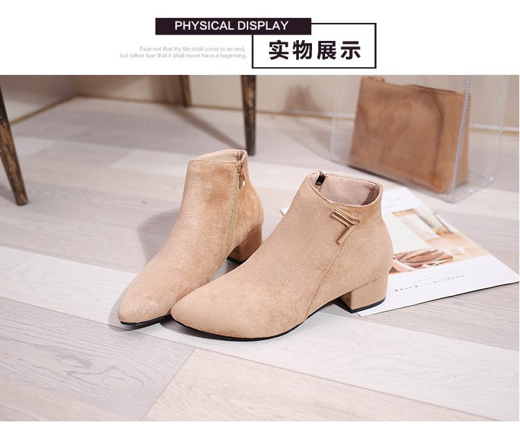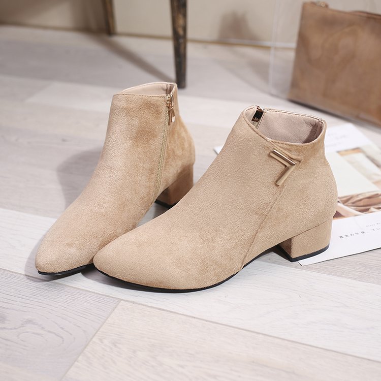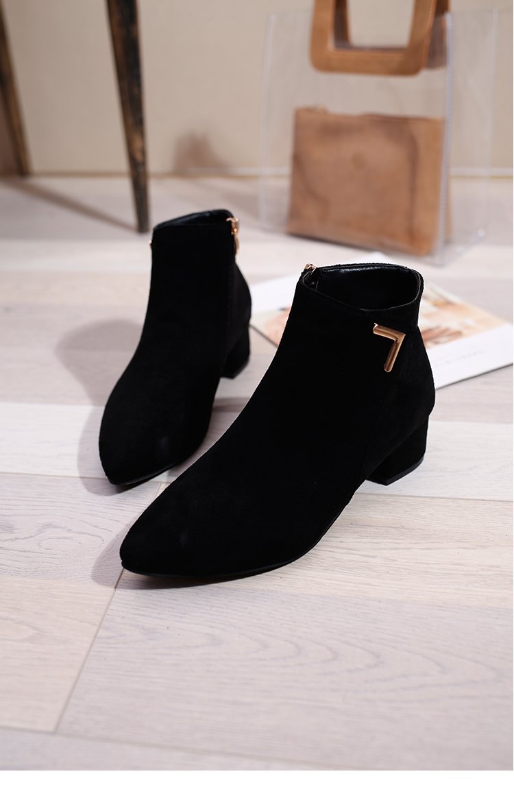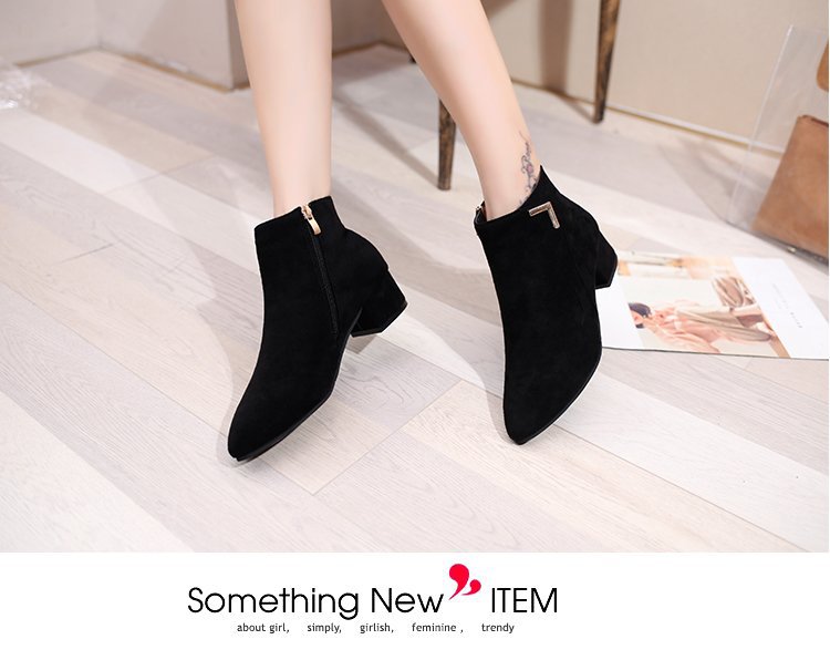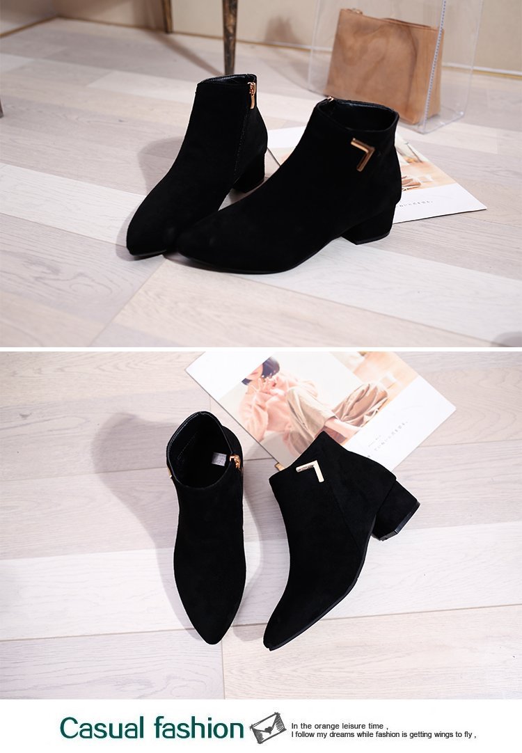 2021 가을과 겨울 뉴 마틴 부츠 두꺼운 굽 짧은 부츠 지퍼 매트 표면 짧은 부츠 여성용 뾰족한 싱글 부츠스토어 가기