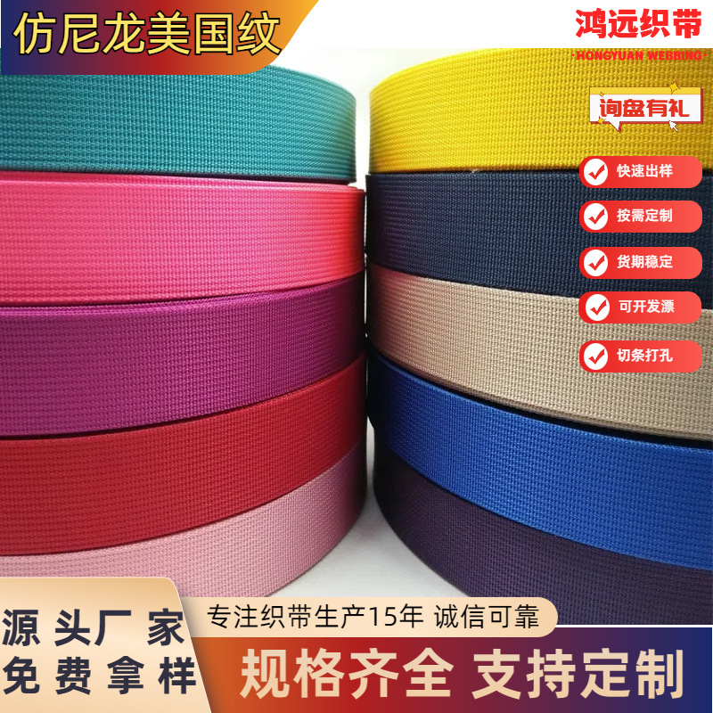 현물 도매 검정색 및 컬러 나일론 웨빙, 나일론 모조 미세 패턴 웨빙, 신발 재료, 가방, 책가방, 미국식 패턴 웨빙