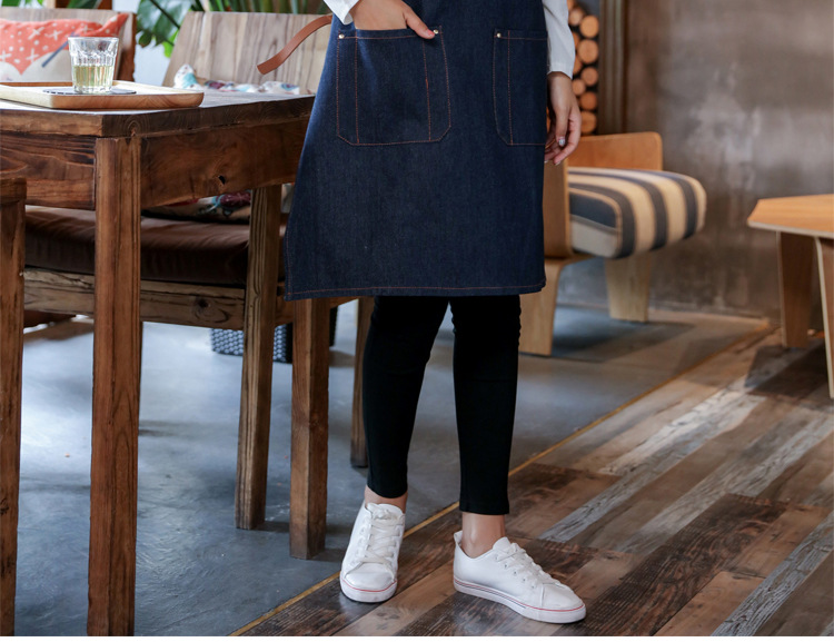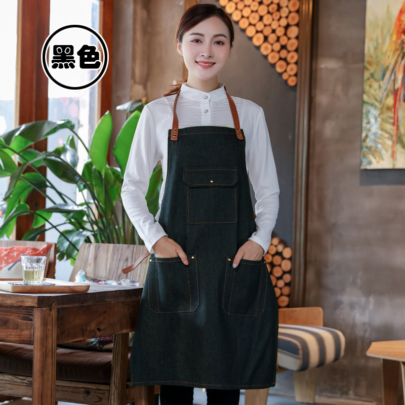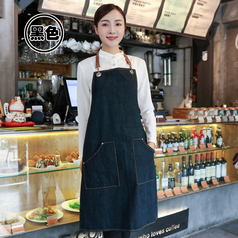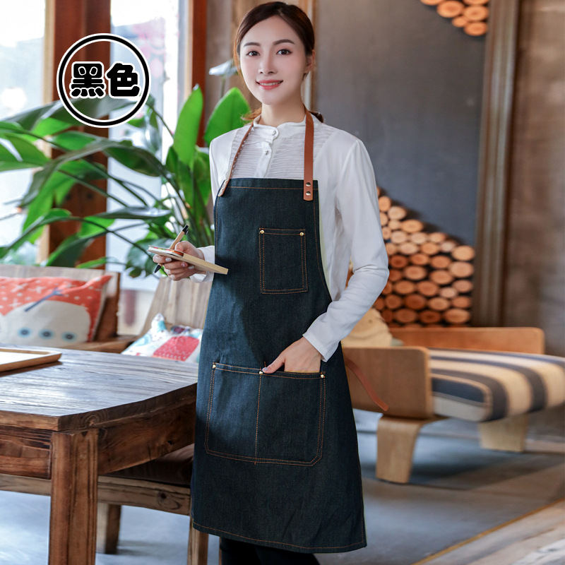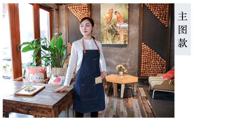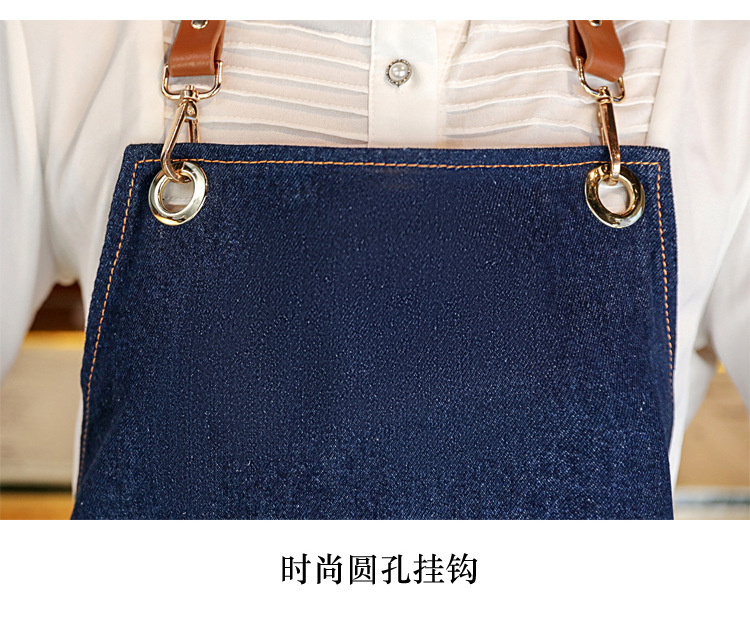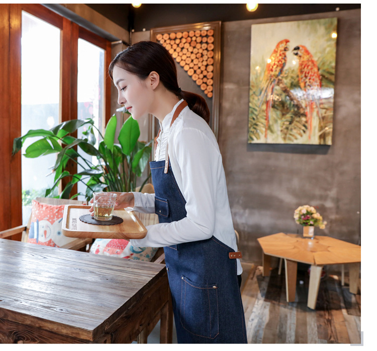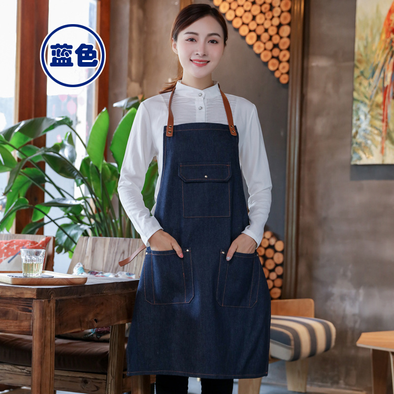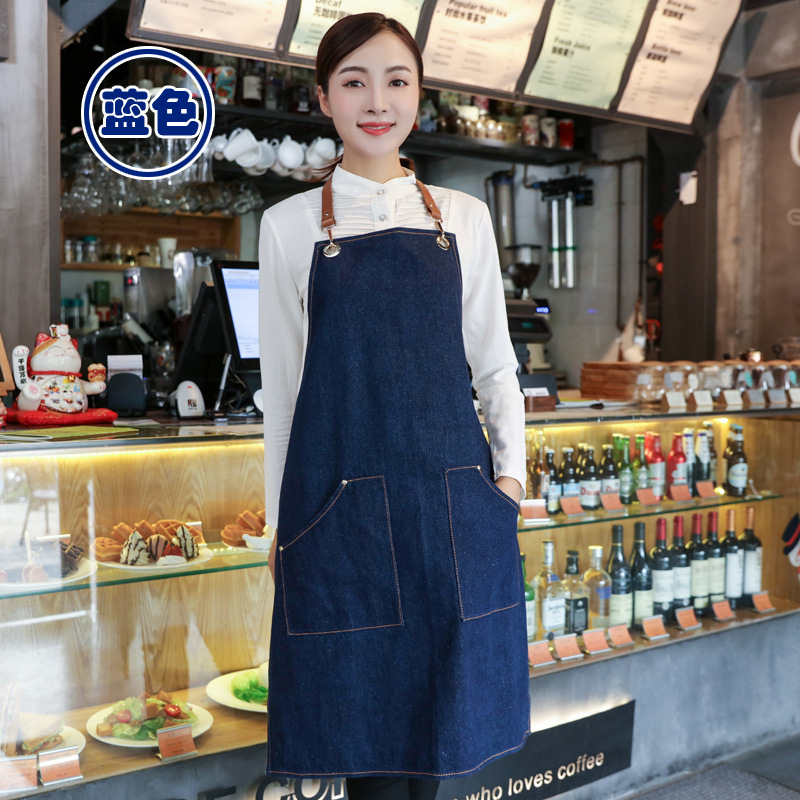 한국 패션 데님 앞치마 사용자 정의 로고 레스토랑 주방 우유 차 가게 꽃집 남성과 여성의 작업 앞치마 주문 제작스토어 가기