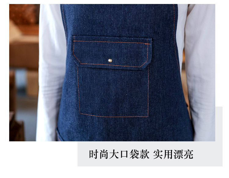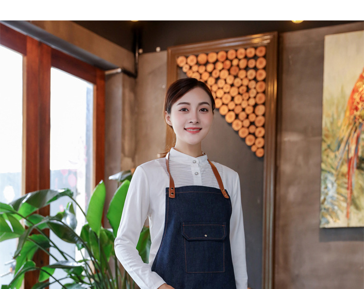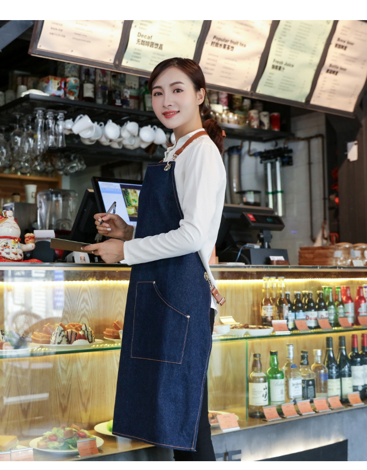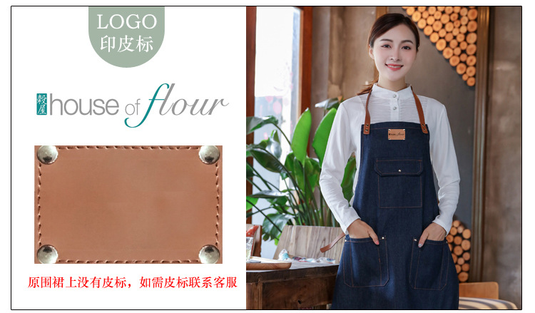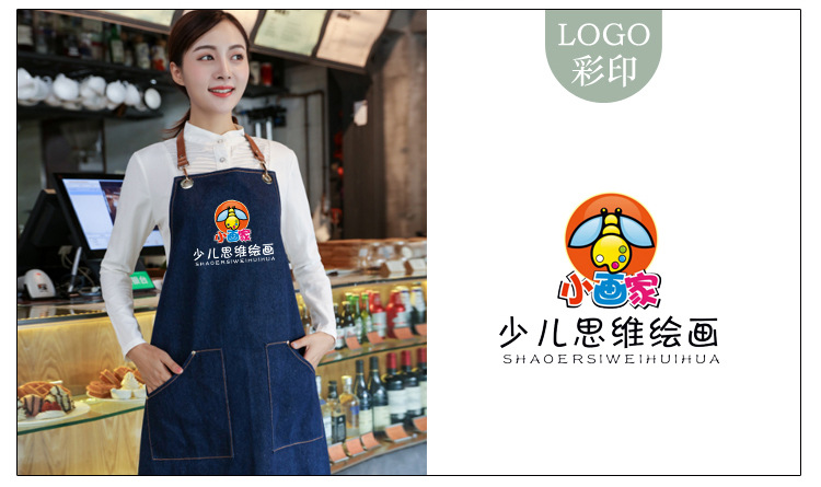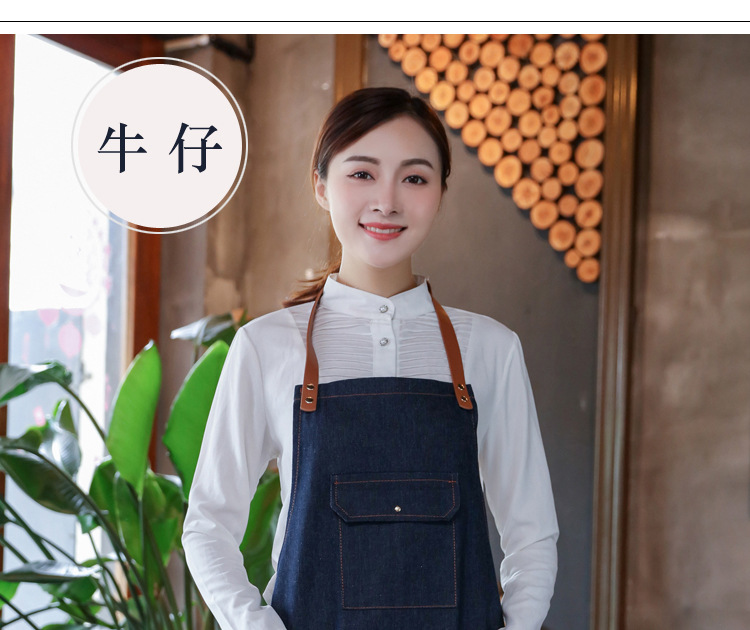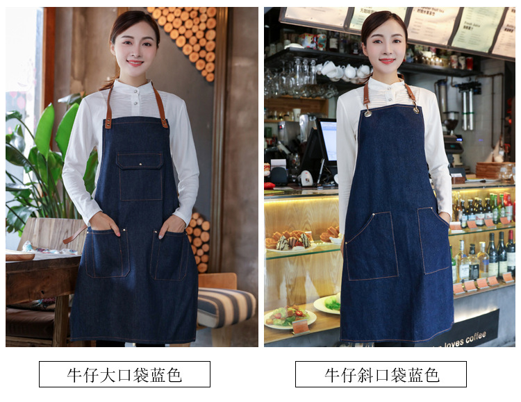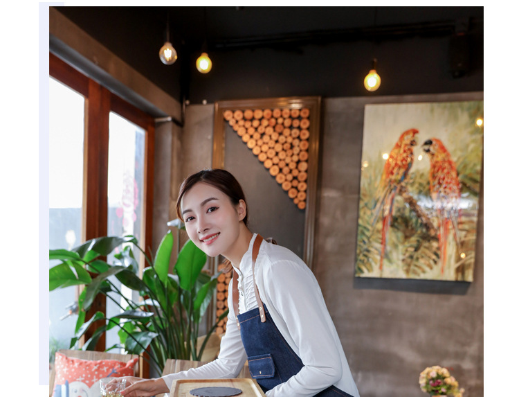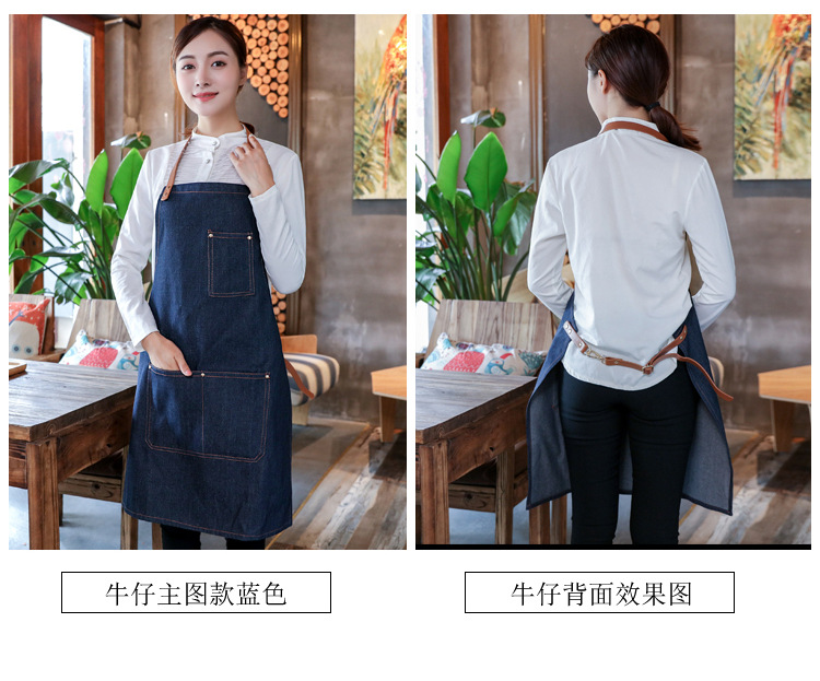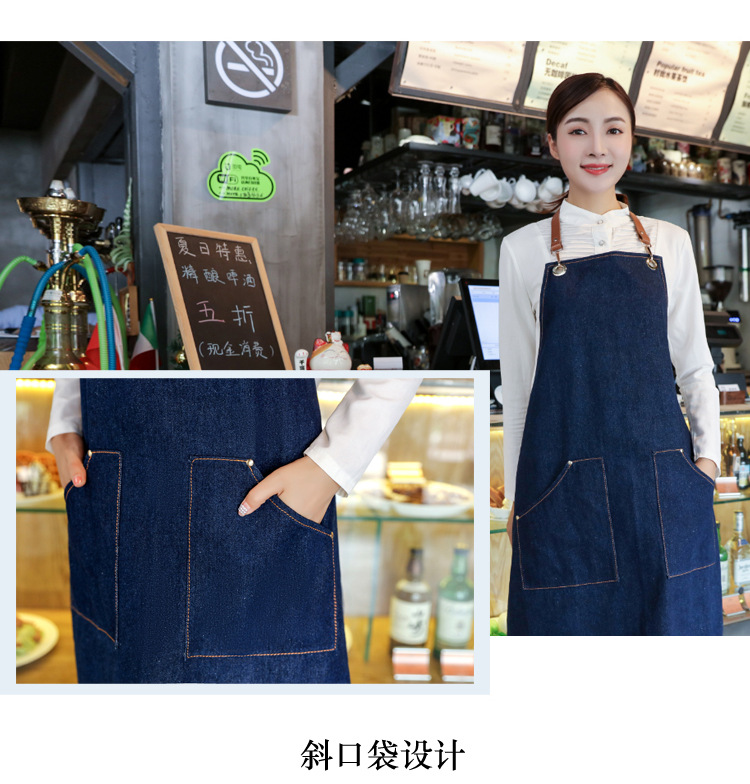 한국 패션 데님 앞치마 사용자 정의 로고 레스토랑 주방 우유 차 가게 꽃집 남성과 여성의 작업 앞치마 주문 제작스토어 가기