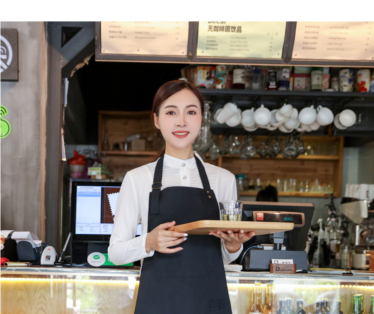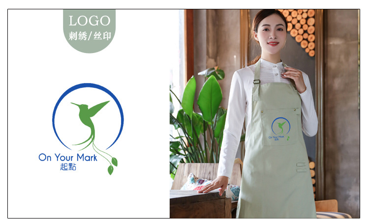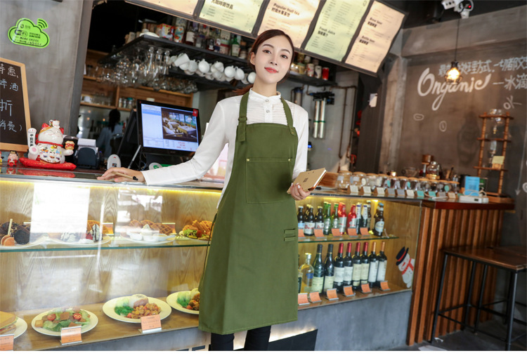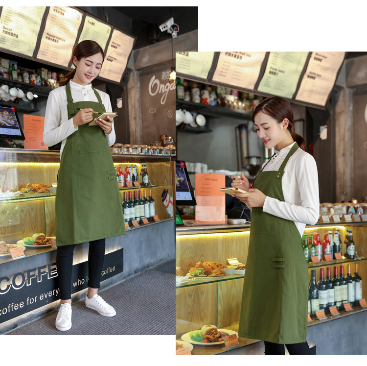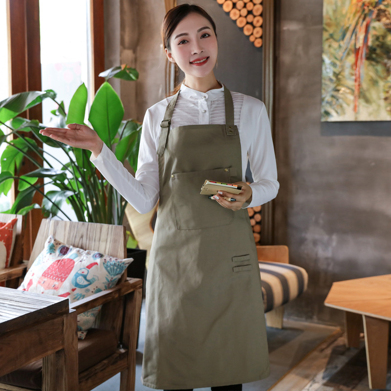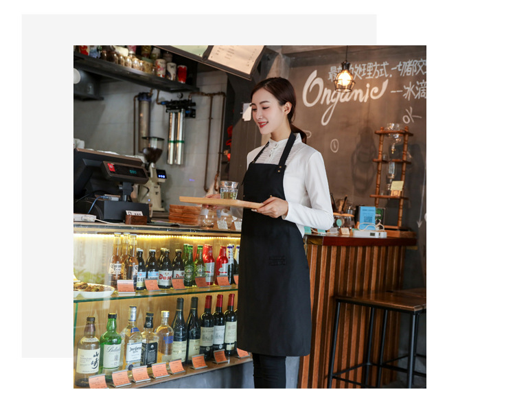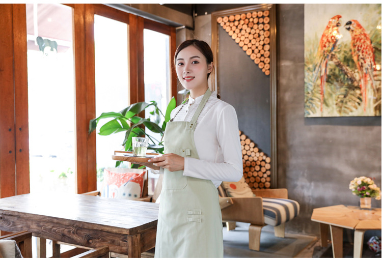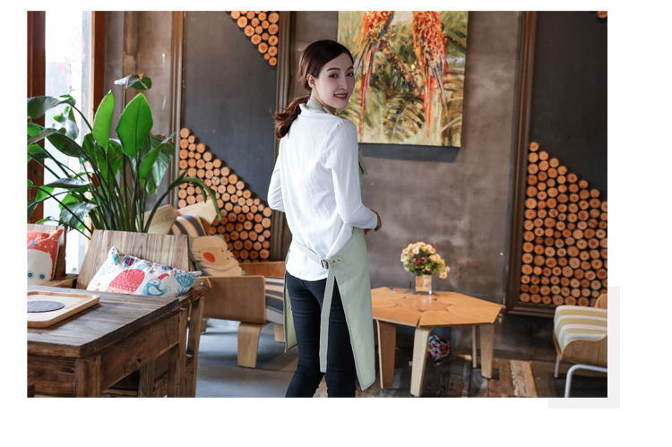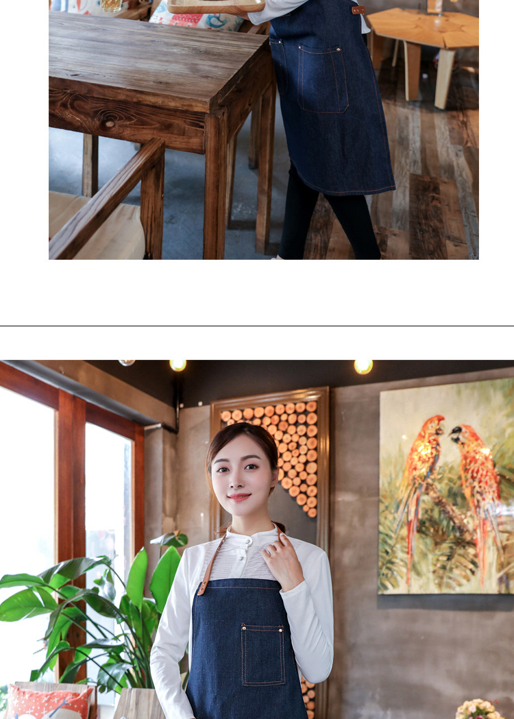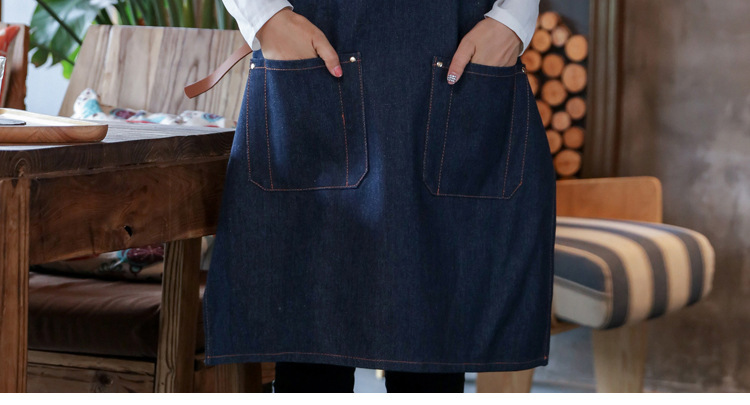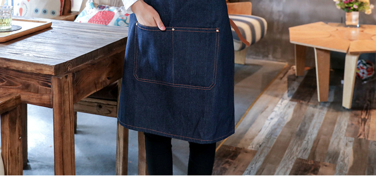 한국 패션 데님 앞치마 사용자 정의 로고 레스토랑 주방 우유 차 가게 꽃집 남성과 여성의 작업 앞치마 주문 제작스토어 가기