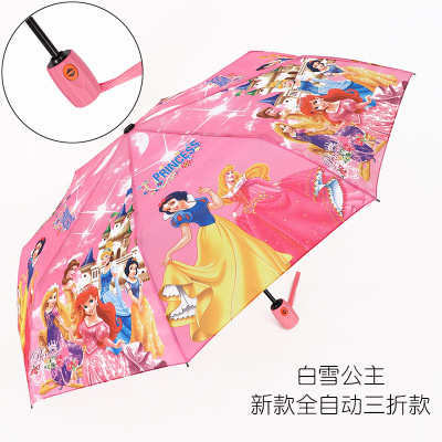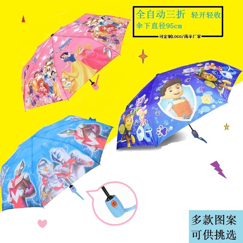 공장 도매 어린이 만화 우산 초등학생 자동 어린이 우산 자기 개방 접이식 3 중 우산 로고