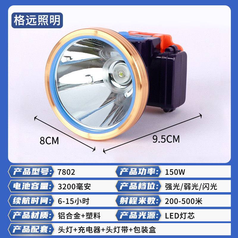 헤드 장착형 LED 리튬 배터리 헤드라이트 야외 충전식 낚시 헤드라이트 야간 강광 장거리 조명 서치라이트 도매
