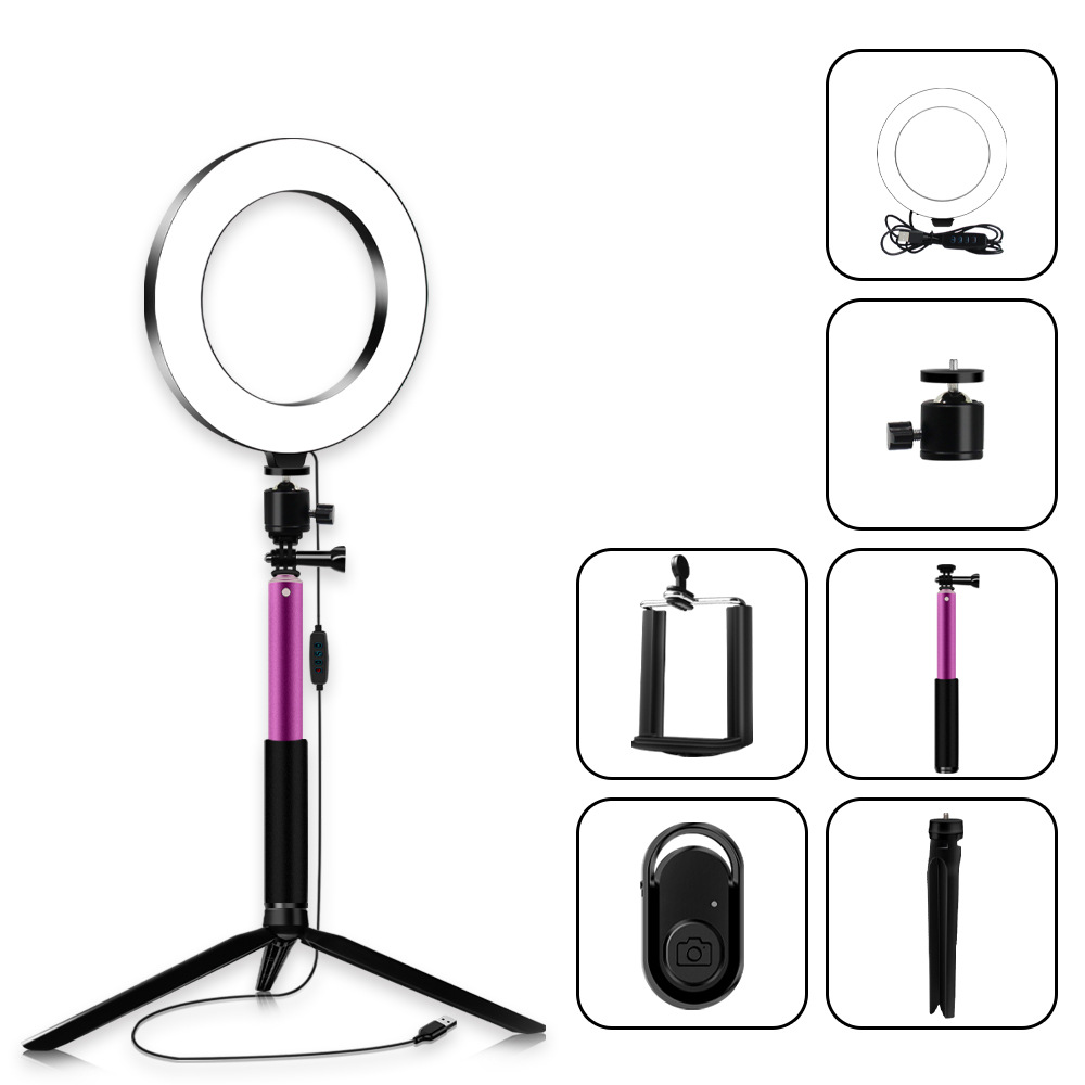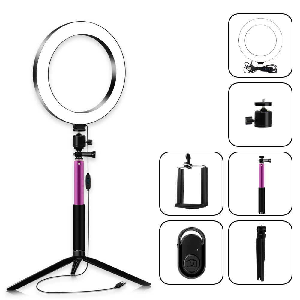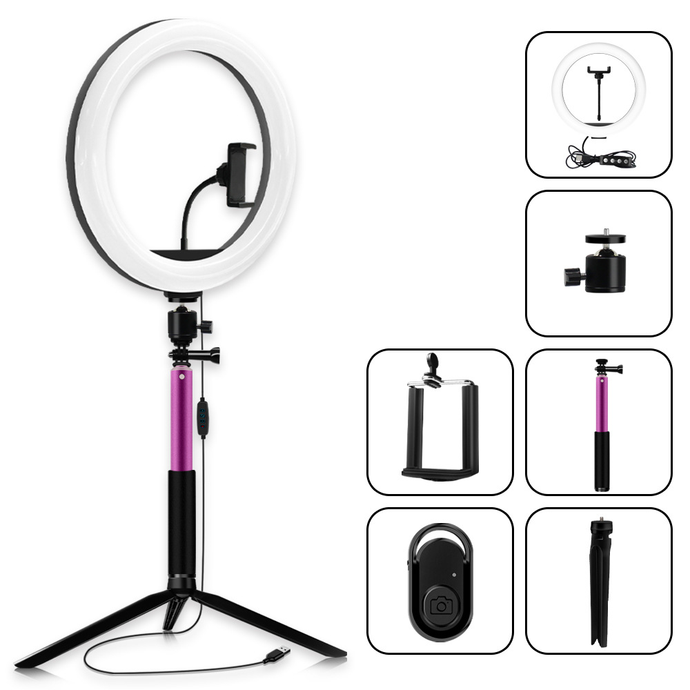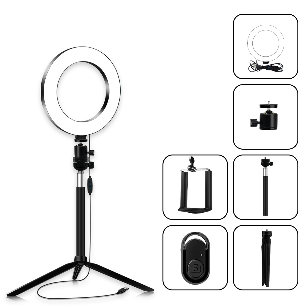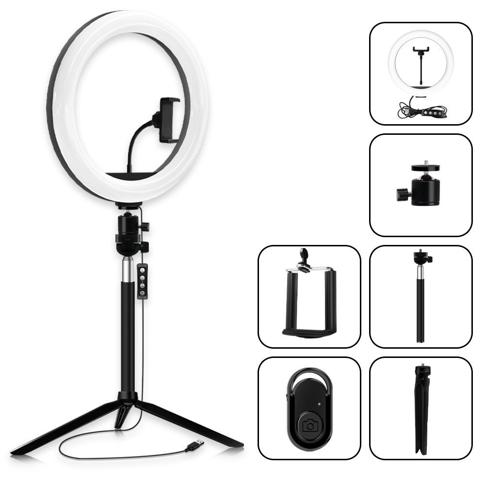 套装包含:灯环+三脚架+自拍杆+手机夹+蓝牙遥控器
