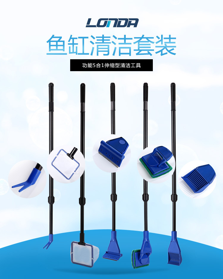 LONDA 연장형 수족관 어항 용품 어항 조경 도구 5-in-1 긴 손잡이 무사각 청소 브러시스토어 가기
