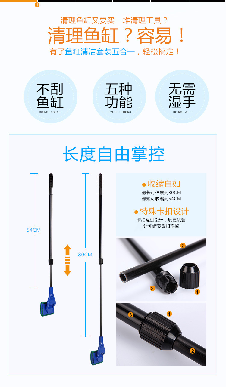 清洁套装带给你全新的体验,无需弄湿双手,就可以简单便捷地清洁鱼缸。